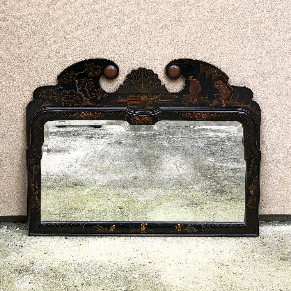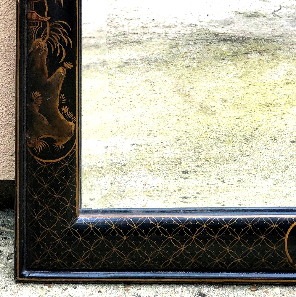 Antique French Chinoiserie Hand-Painted Beveled Mirror
