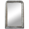 Antique French Louis Philippe Period Silvered Mirror represents the epitome of tailored elegance that was achieved during the Restoration, a short-lived resurgence of the French monarchy that briefly returned to power between the French Revolution and the eventual establishment of the Republic. Louis Philippe, unknown to many, was the one primarily responsible for saving Versailles from falling into ruin, which is a debt owed to him by the entire world! This example features the classic multi-tiered molding completely enveloping the mirrored glass, with the original silvered finish showing appropriate wear for its age. There's also a subtle embossed pattern that can be noticed with careful observation. The classic curved shoulders contribute to the definitive expression of the style which, due to its classic simplicity, has remained popular for what will soon be two centuries!