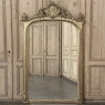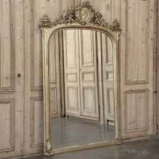 Grand 19th Century French Napoleon III Period Gilded Mirror is a magnificent example of the craftsmanship and artistry of one of the golden ages in French design! The neoclassical design influence of the ancient Greeks and Romans is clearly evident, design motifs that enamored King Louis XVI and Queen Marie Antoinette as well. This particular example is unusual with a relief profile cameo of a beautiful maiden taking center stage, surrounded by intricate detailing, laurel sprays, acanthus plumes, ribbon tied into a bow, and of course two cherubs in full relief on a back drop of floral sprays. The subtly arched crown, so festooned, leads the eye outward to the shoulders which are graced with flaming urn finials set on protruding pediments. The corners feature intaglio foliate impressions accenting the bold molding detail, with acanthus fronds at top and plumes at the base, with tailored yet finely molded framework all between. Conceived for a graciously sized home, the generously sized glass will provide an incredible reflection of your room as well as enhance ambient lighting, just as it has for a century and a half!