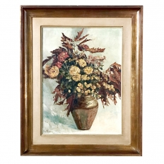 Antique Framed Oil Painting on Canvas ~ Floral Still...