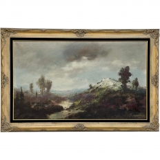 19th Century Framed Oil Painting on Canvas signed Casteleyn is a remarkable example of the genre, popular throughout the centuries and most notably revived during the Napoleon III Period.  Here the artist draws the viewer into the scene as if stepping across stones in the brook, while pausing to take in the serene view of the meanderings of the brook,...