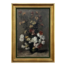 Framed Still Life Oil Painting on Canvas by G. Davoise is an interesting interpretation of a staple of the art world.  Vases full of fresh, colorful flowers have inspired artists both young and seasoned for centuries.  Here we see Davoise using bold brush strokes and a muted jewel tone palette in a style influenced by impressionism.  Even with subtle...