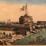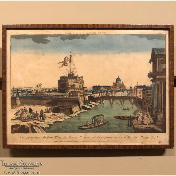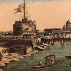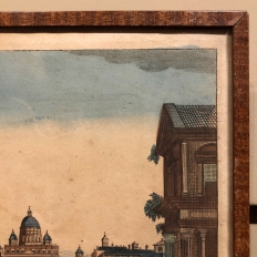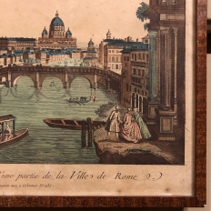 19th Century Framed Hand-Colored Lithograph is a beautifully rendered view of the Vatican in Rome as seen from the banks of the Tiber River. Produced for the lucrative French market, during the period it remained fashionable for the affluent to spend time or vacation in the storied city, to where all roads lead!