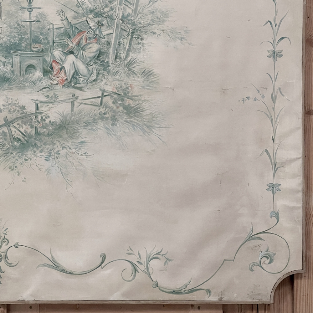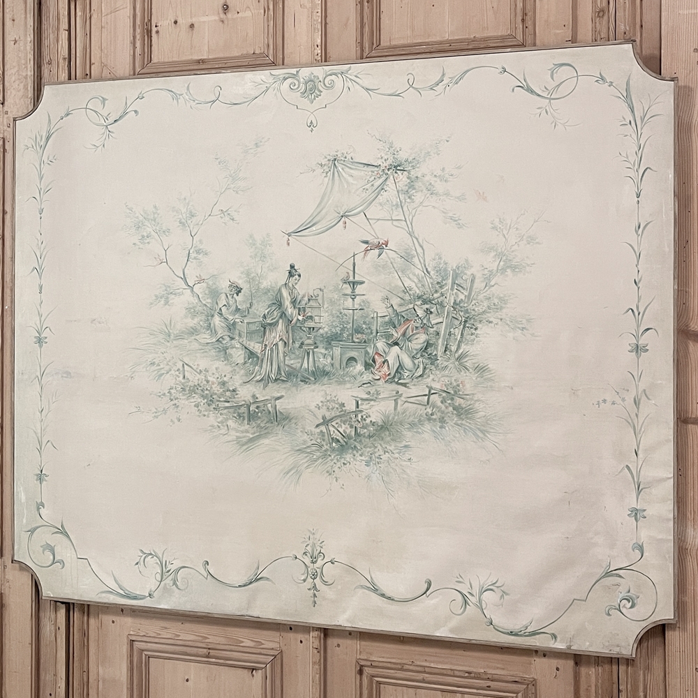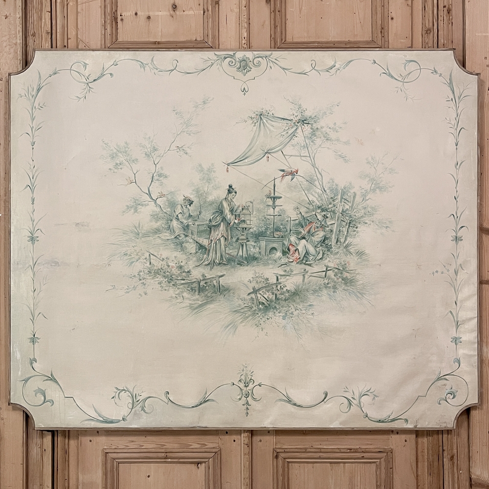 19th Century French Chinoiserie Hand-Painted Panel on Canvas