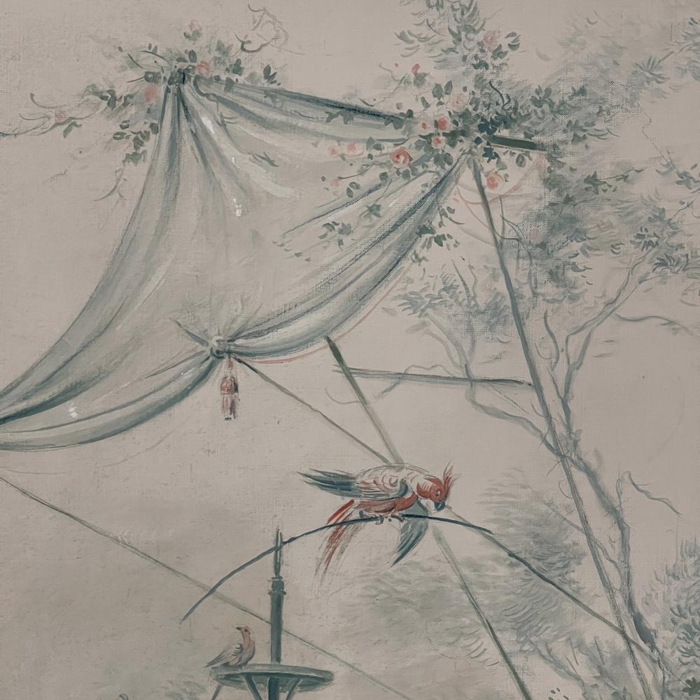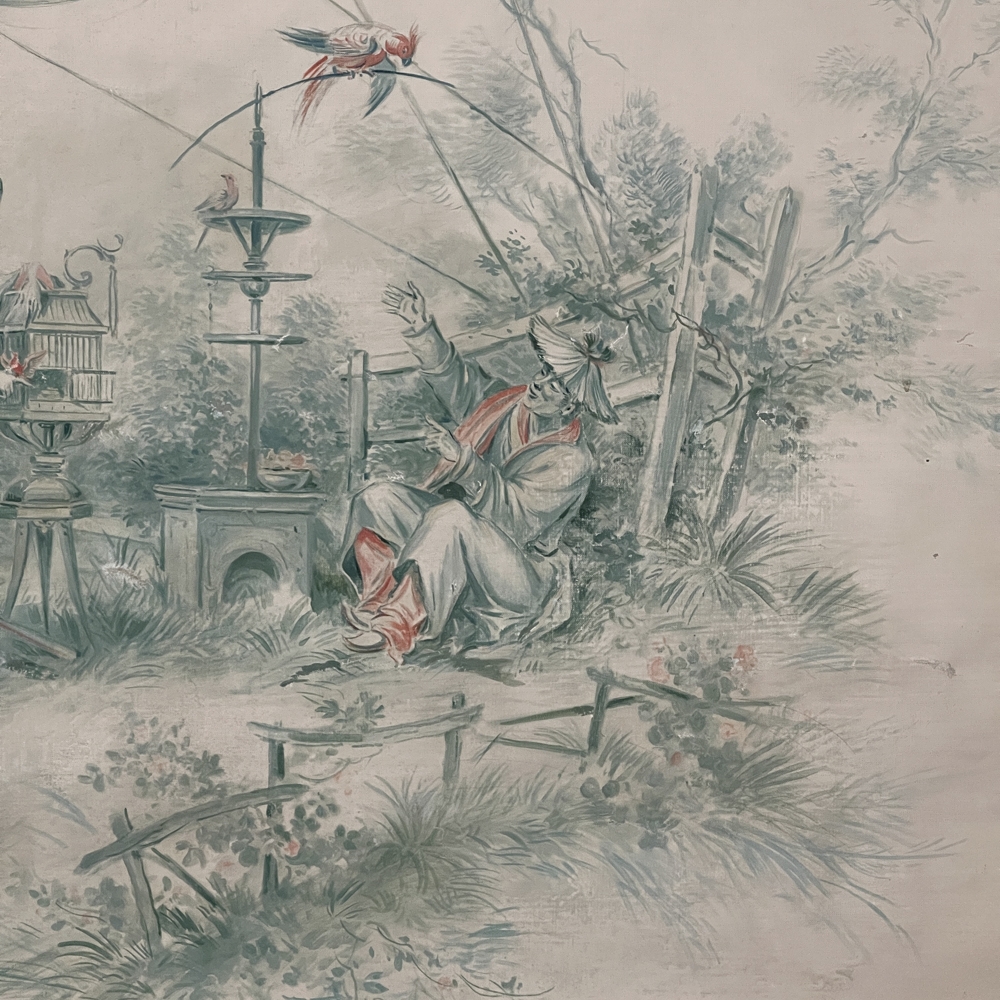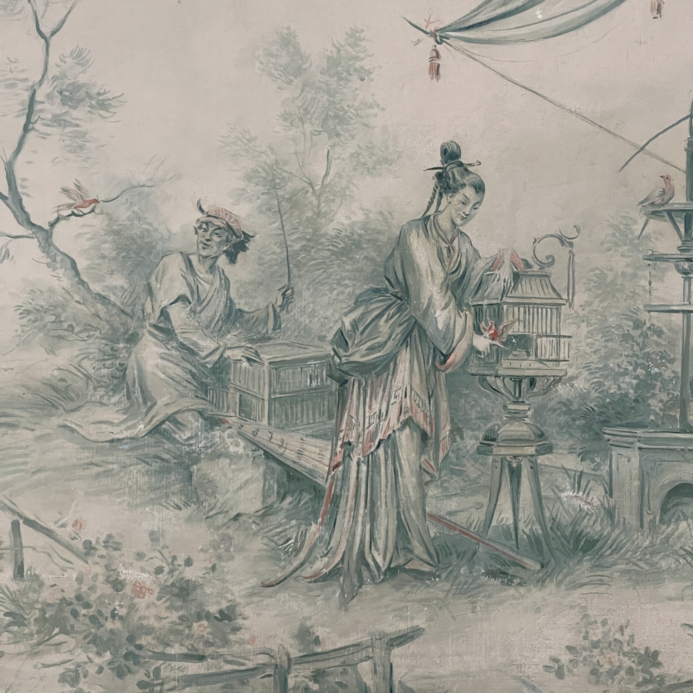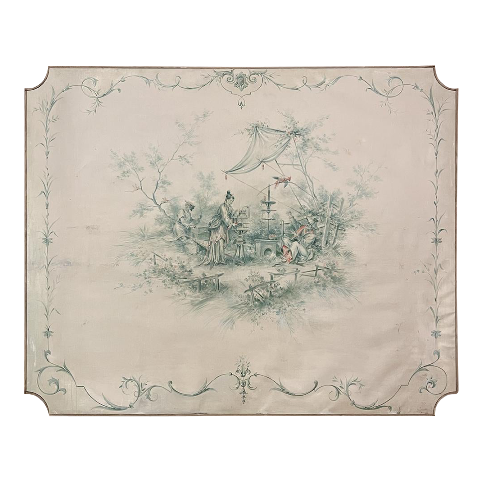 19th Century French Chinoiserie Hand-Painted Panel on Canvas