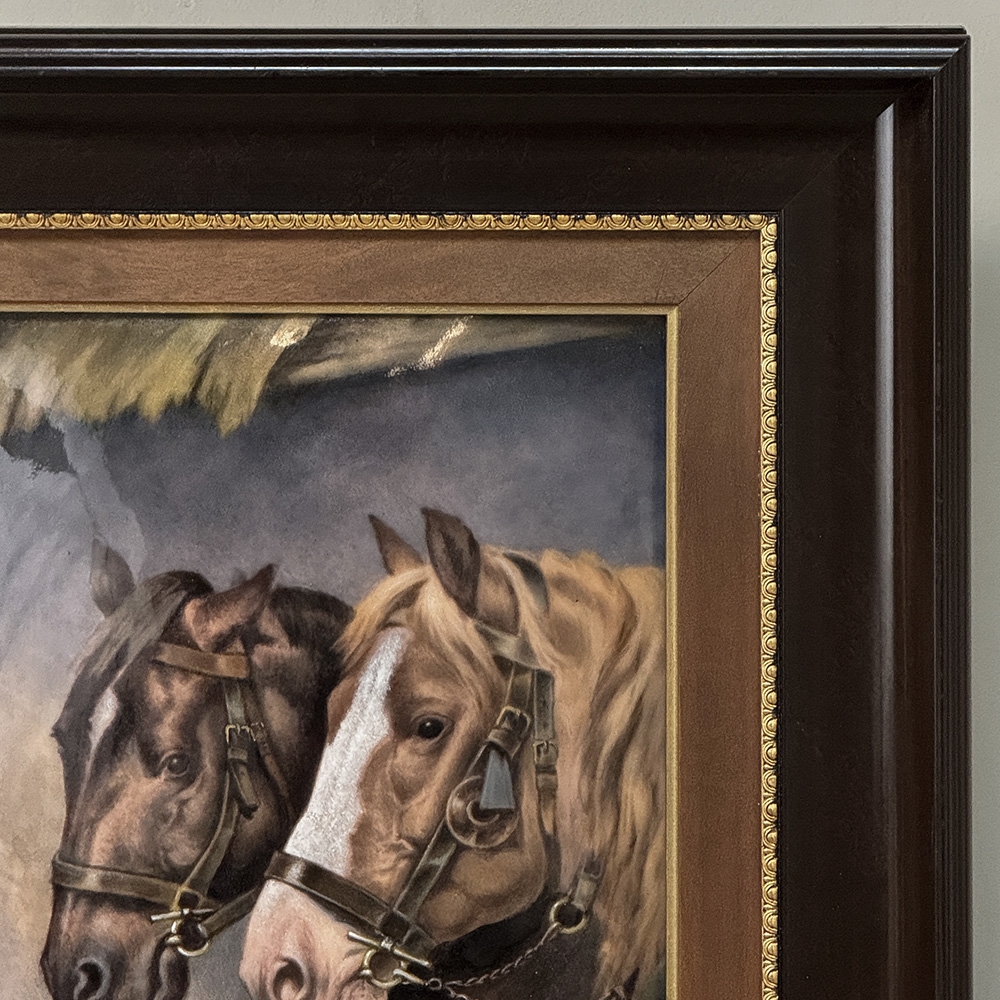 Antique Framed Limoges Porcelain by Camille Faure (1874-1956) 'Stablemates'