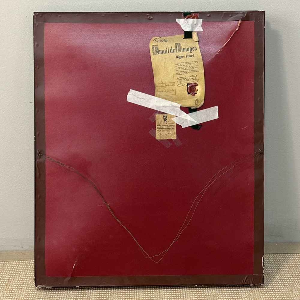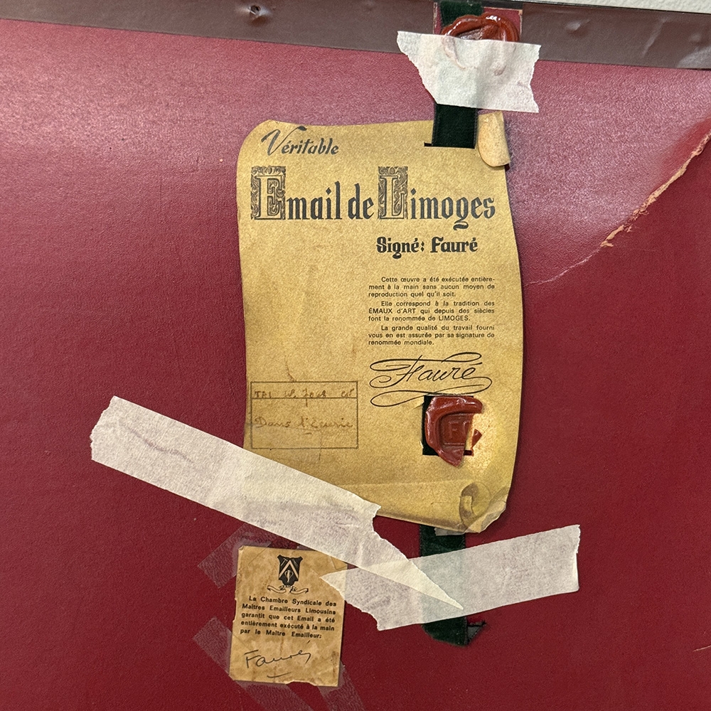 This porcelain plaque reflects that same dedication to material and process. The smooth, luminous surface of Limoges porcelain provides an ideal ground for finely controlled decoration, allowing for delicacy in detail while preserving clarity and richness of tone. The result is a work that feels both intimate in subject and elevated in execution.