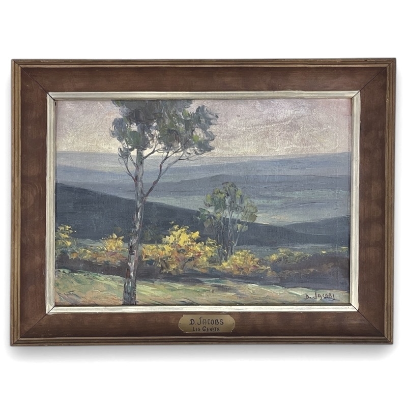 Antique Framed Oil Painting on Board by Dieudonné Jacobs (1887–1967), “Les Genêts”