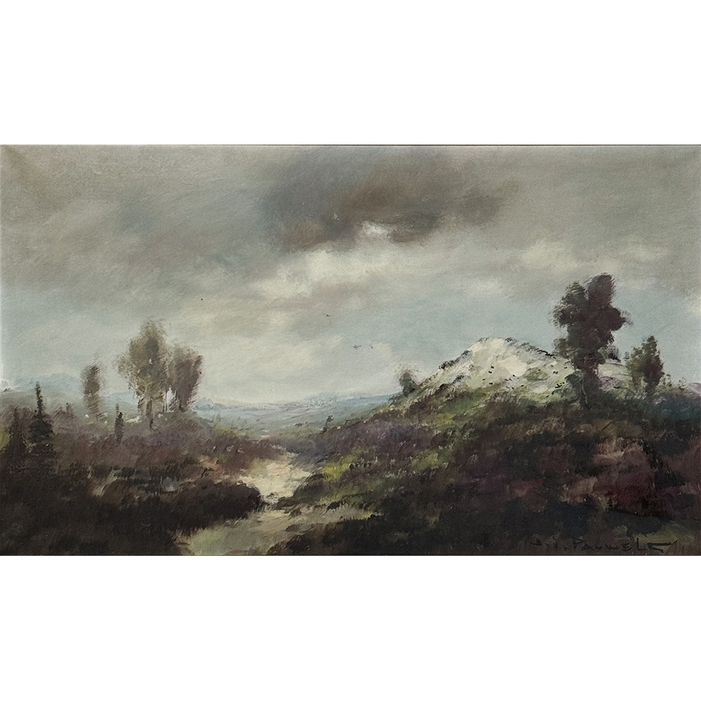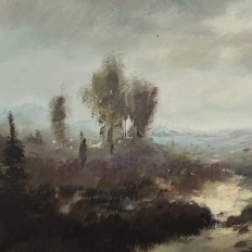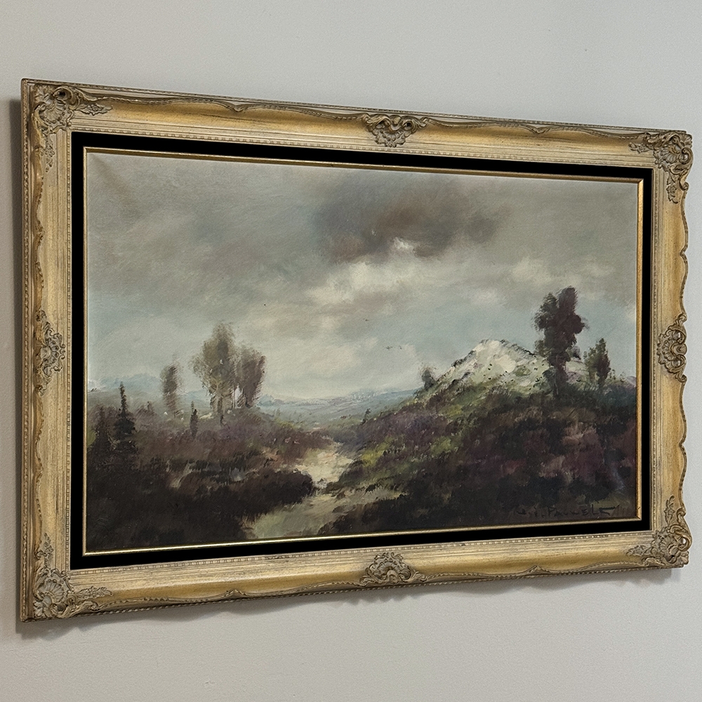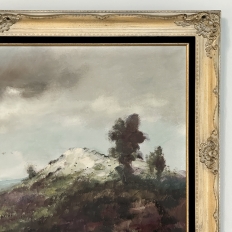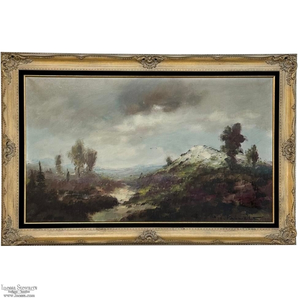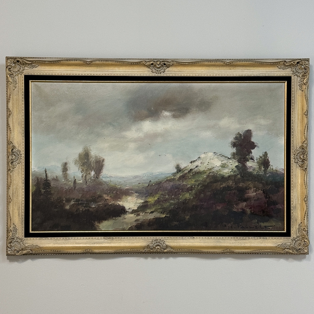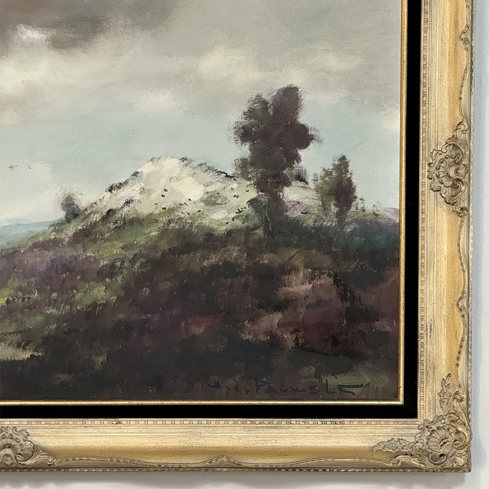 Antique Framed Oil Painting on Canvas by Henri Joseph Pauwels (1903-1983) is a classic example of landscape work by the celebrated and prolific artist who is one of Belgium's favorite sons. Using an impressionistic flair, Pauwels captured the gray spectrum of a cloudy morning providing diffuse light over the dunes with vegetation resisting the elements and competing for sunlight with the sandy beaches. Renowned for his landscapes and depictions of the simple country life, Pauwels experimented with a wide variety of genres, and has successfully attracted our attentions with this extraordinary work which resides in its original frame.