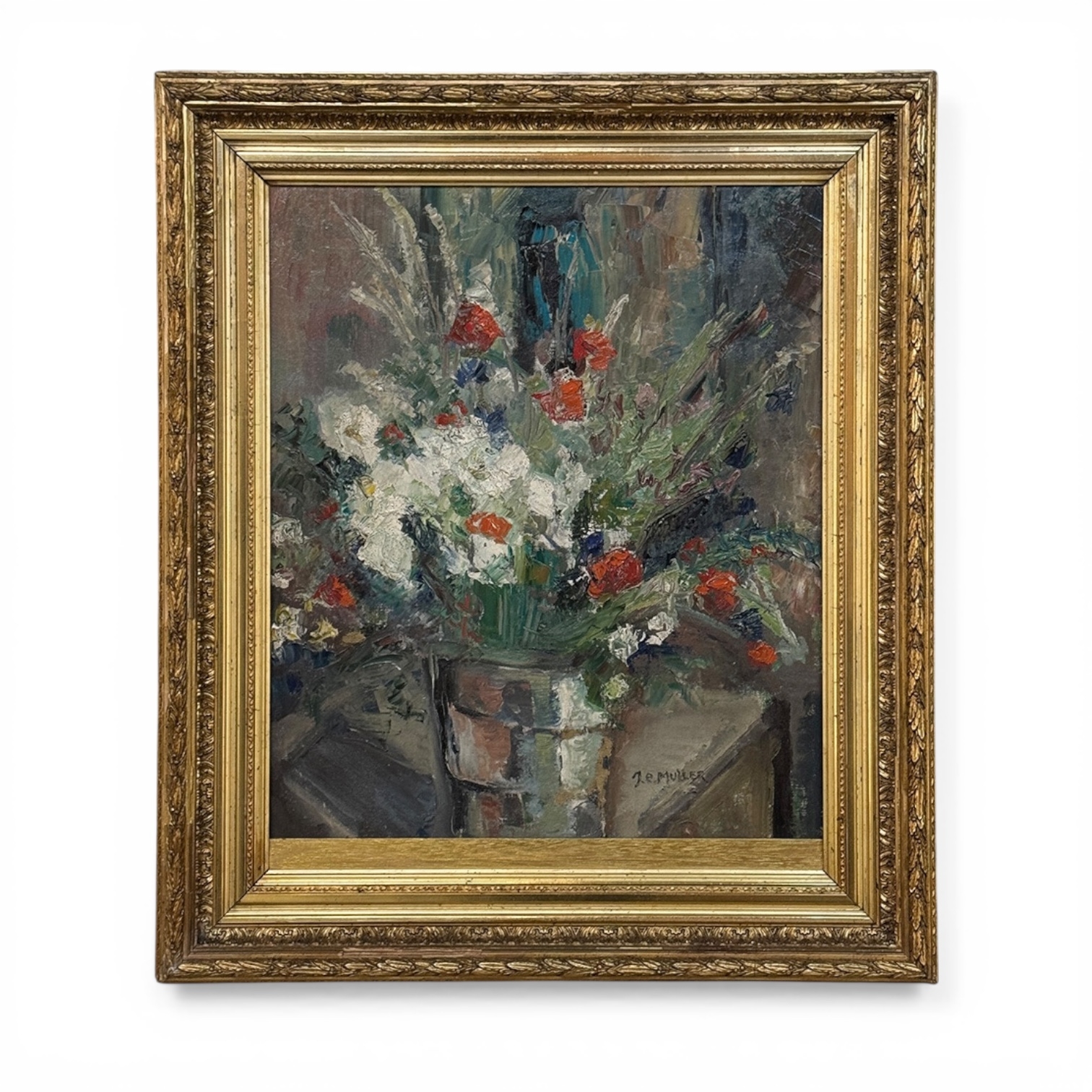 Survives in its original beautifully detailed giltwood frame, signed J. E. Muller