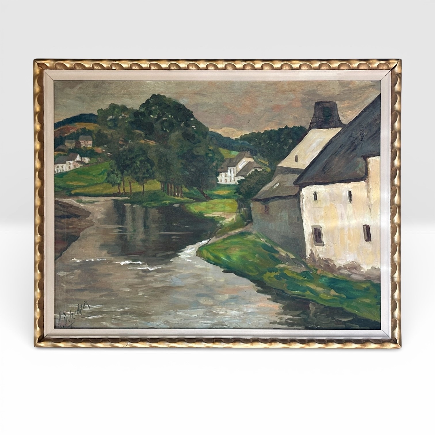 Léon De Frecheux (1884–1944) was a Belgian painter active in the first half of the 20th century. He is associated with regional landscape painting, focusing primarily on pastoral and village scenes. His work reflects the lingering influence of late Impressionism and post-Impressionist naturalism, emphasizing atmosphere, light, and the quiet dignity of rural architecture and waterways. Though not widely documented in major museum collections, his paintings are appreciated for their sincerity of vision and strong sense of place, characteristic of many accomplished Belgian regional artists of his generation.