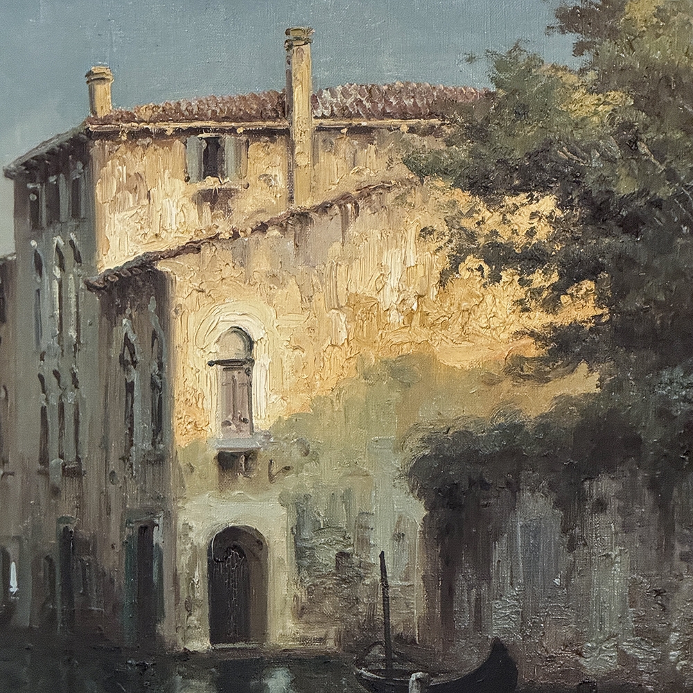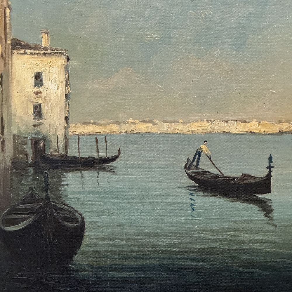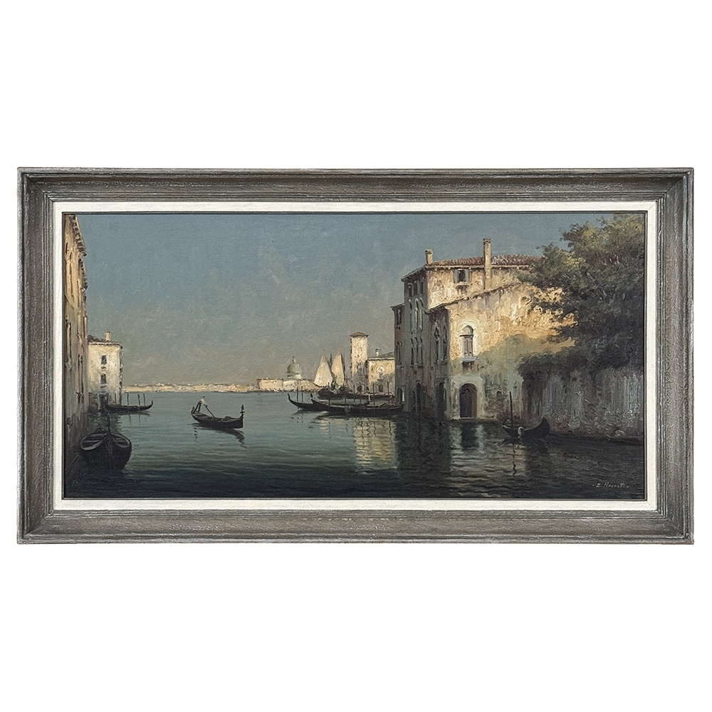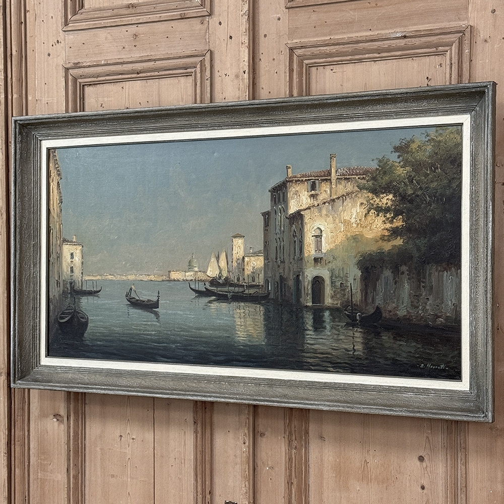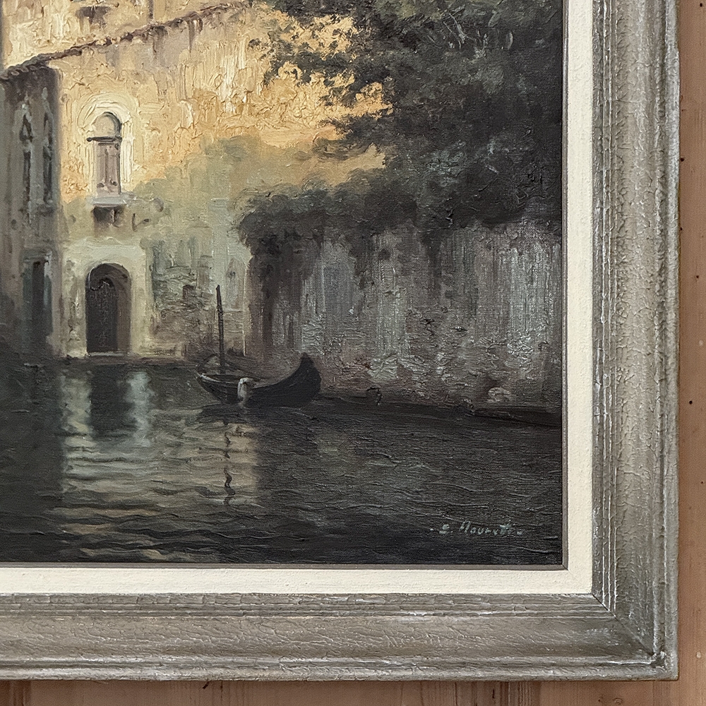 Antique Framed Oil Painting on Canvas of Venice by Mauretti
