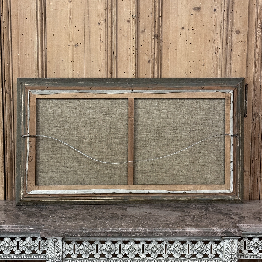 Antique Framed Oil Painting on Canvas of Venice by Mauretti is a superlative example of an Italian vedute, an art form originally intended for Venetian dignitaries and later blossoming as souvenirs over the last several centuries, inspired by masters such as Canaletto and Belotto. The works rendered the picturesque city in what was then an innovative perspective method, adding realism and depth to the paintings that simultaneously rendered them uniquely special as well as innovative enough to bring the techniques to many other art forms, especially cityscapes and landscapes. Here we see a scene right off the Grand Canal with gondolas at dock and plying the still waters. Such watercraft were used as we would cars and trucks today on paved streets. The domed structure in the background appears to be the famed Santa Della Maria Salute Cathedral. Survives in its original frame with artist's signature lower right.