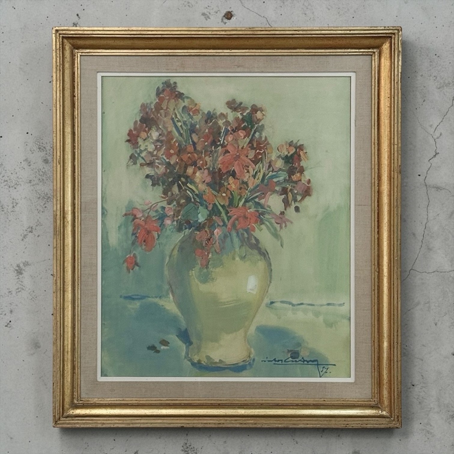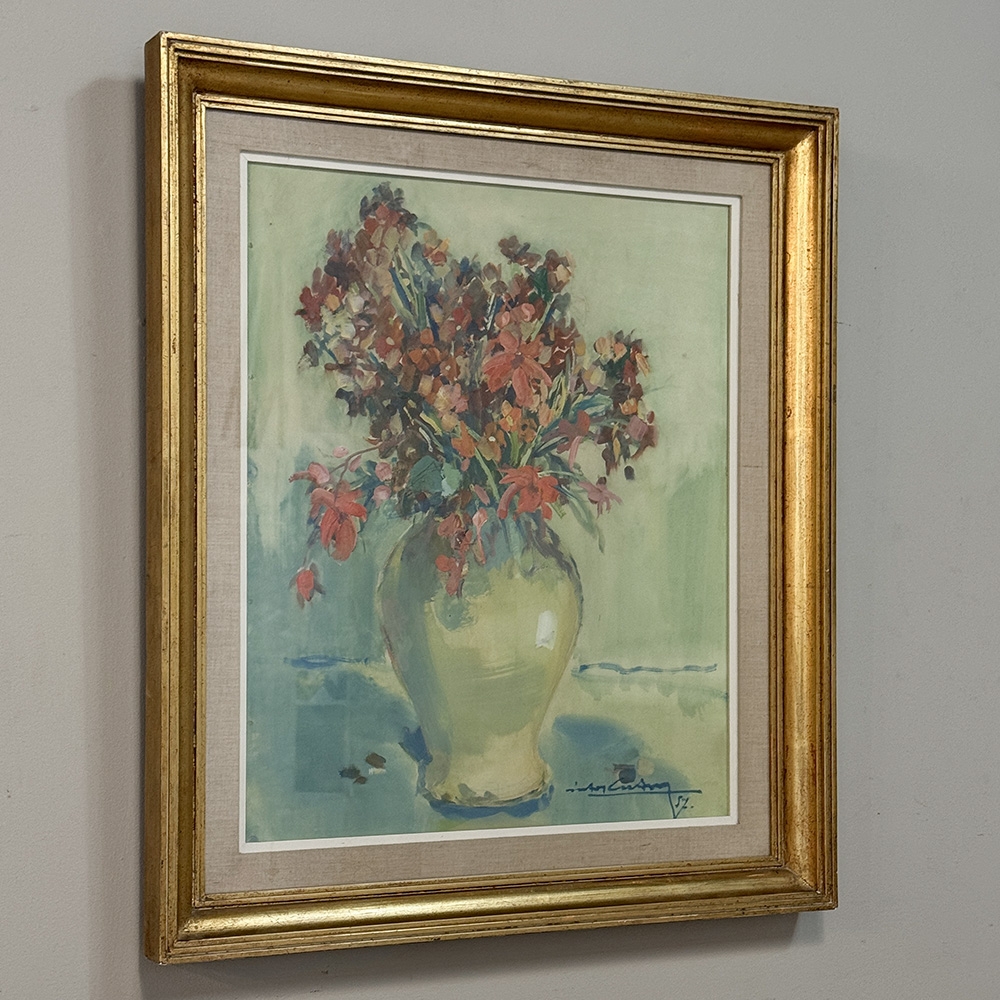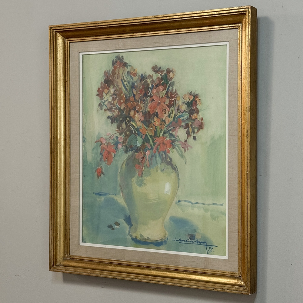 Framed Oil on Panel “Still Life with Flowers” by Guy Cambier (1923–2008), Dated 1944