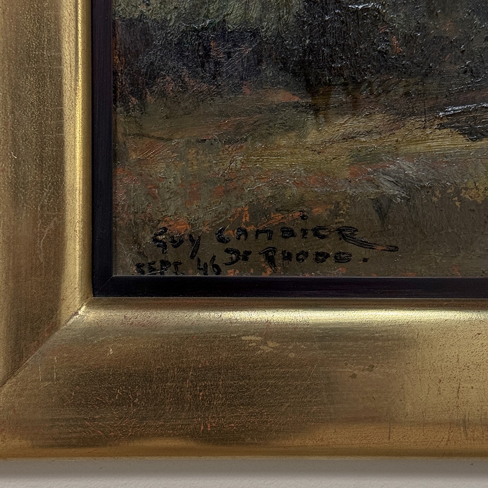 Guy Cambier was known for landscapes, figures, still lifes, and genre scenes, and this early dated work is a wonderful example of his ability to create a landscape with strength, texture, and a vivid sense of atmosphere.