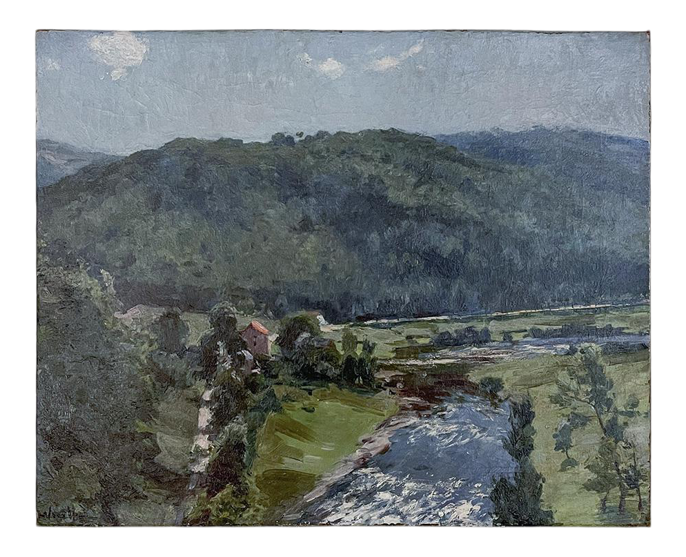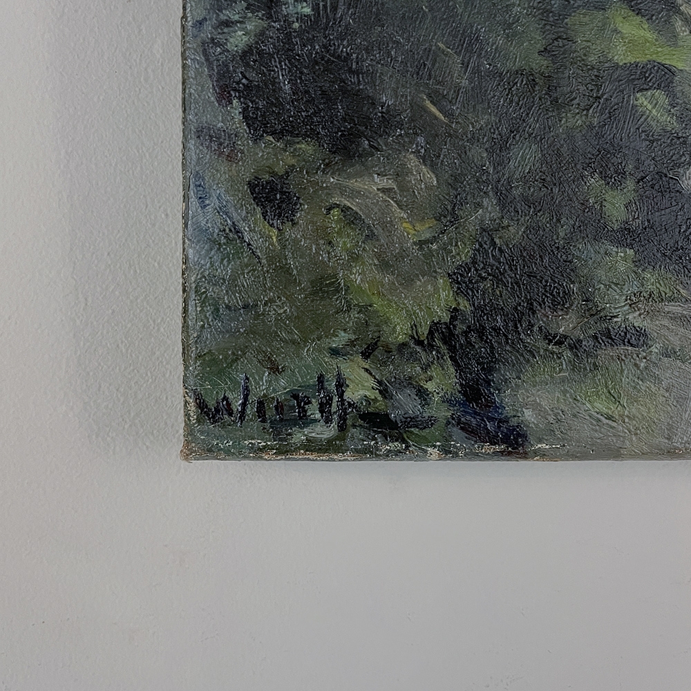 Wurth excelled in all areas: portraits, seascapes, and still lifes, although those types are less well known than his landscapes of the Ardennes which made his reputation. Wurth commonly depicted clouds and light with the accompanying luminosity creating a powerful presence on the canvas. His production of oils, watercolors, and drawings was very important in the Liège region, where a Wurth was hung on the wall of all the bourgeois houses. From 1889 to 1893, Xavier Wurth was a pupil of Adrien de Witte and Évariste Carpentier at the Académie Royale des Beaux-Arts in Liège. He exhibited many times and won the Prix de Rome. Friend of Richard Heintz, Auguste Donnay and Albert Sirtaine, he gave a particularly delicate shine to the Ardennes landscapes. About ten works can be found at the Museum of Walloon Art. He was also professor of drawing at the Royal Academy of Fine Arts in Liège from 1921 to 1932.