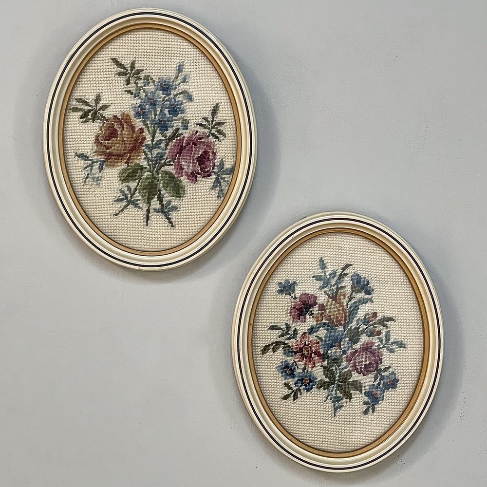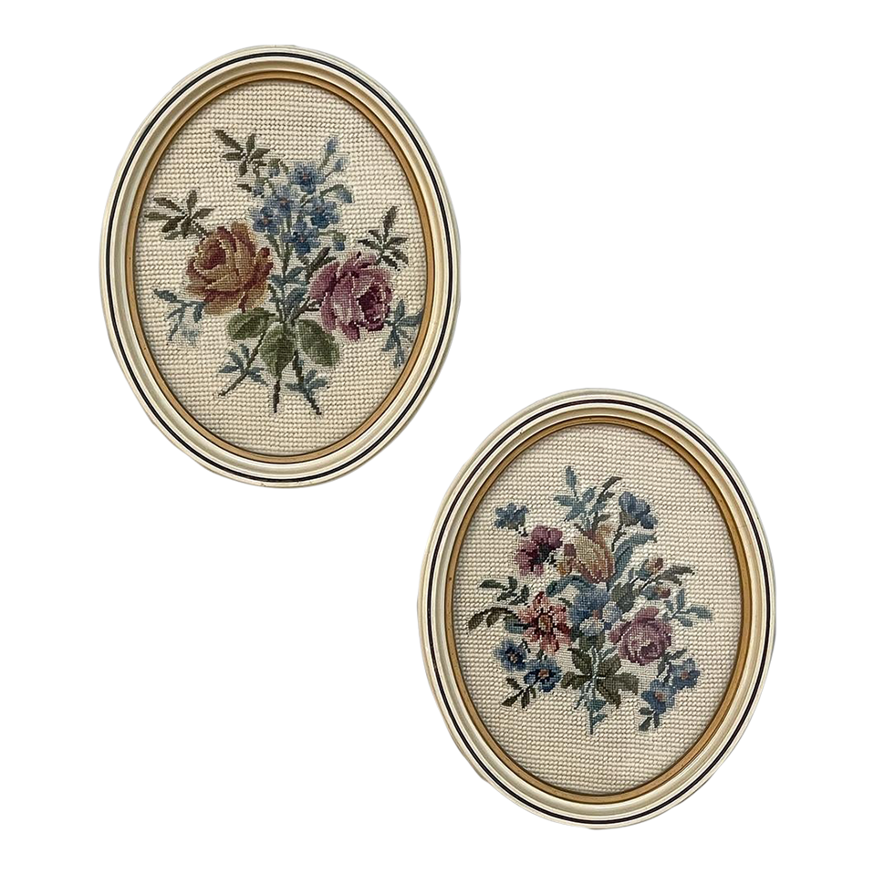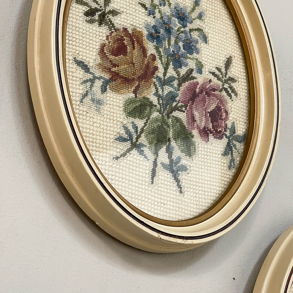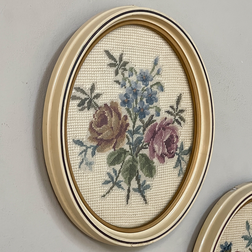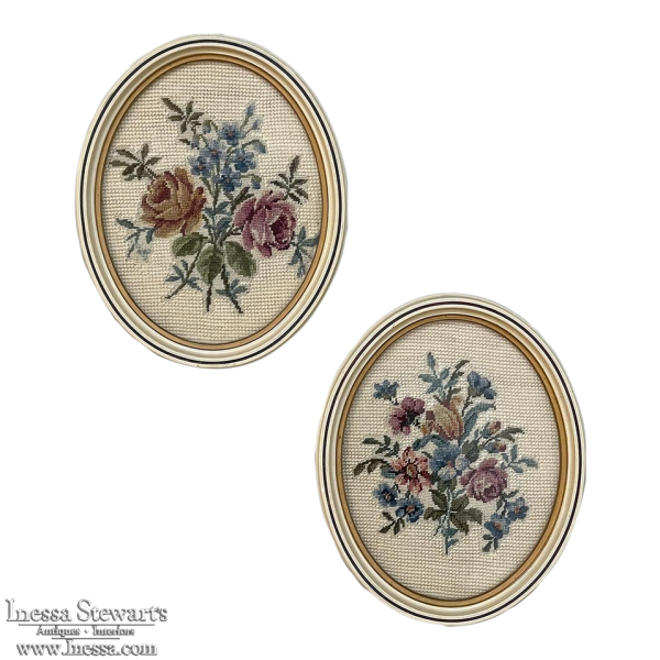 Pair Antique Needlepoint Works in Original Bakelite Frames