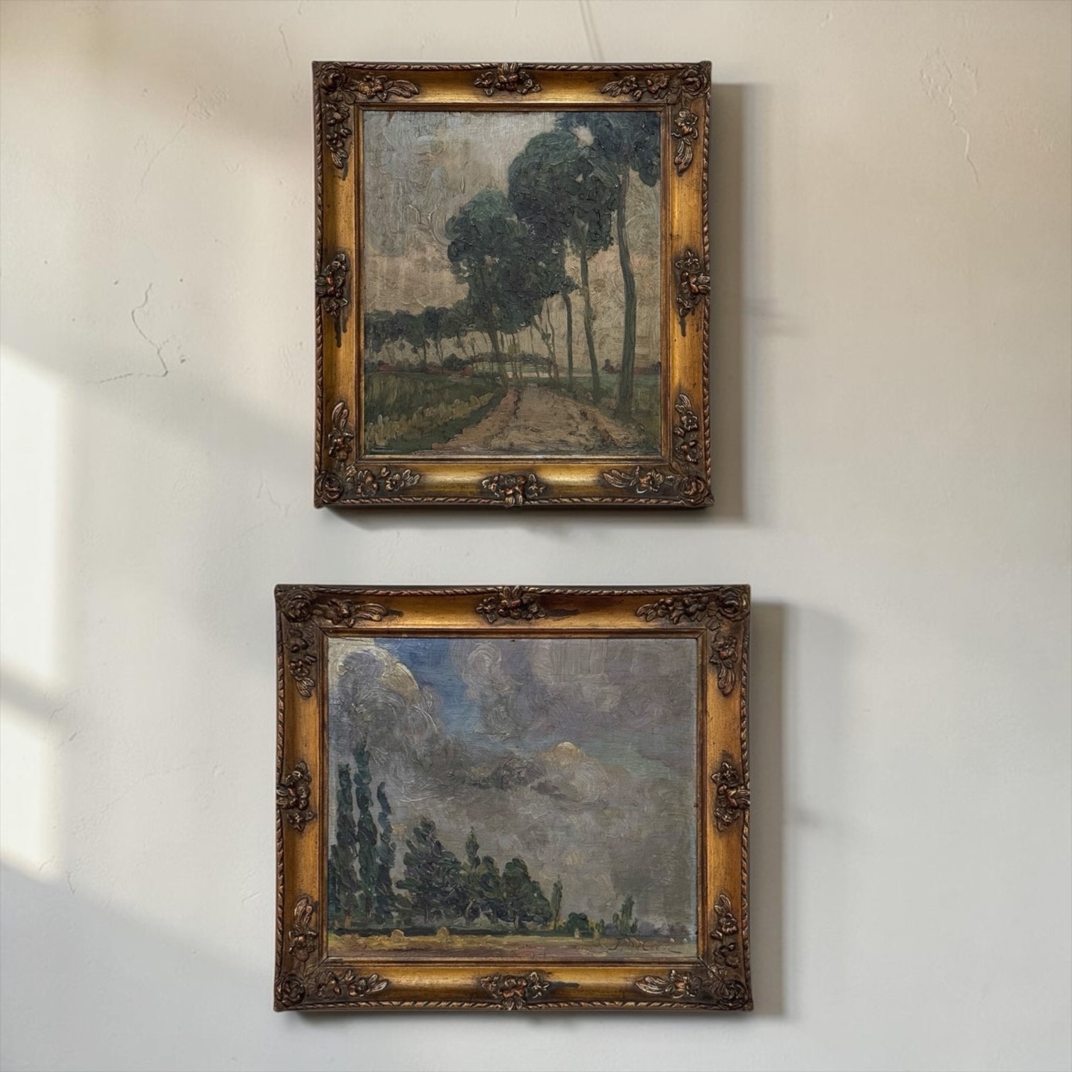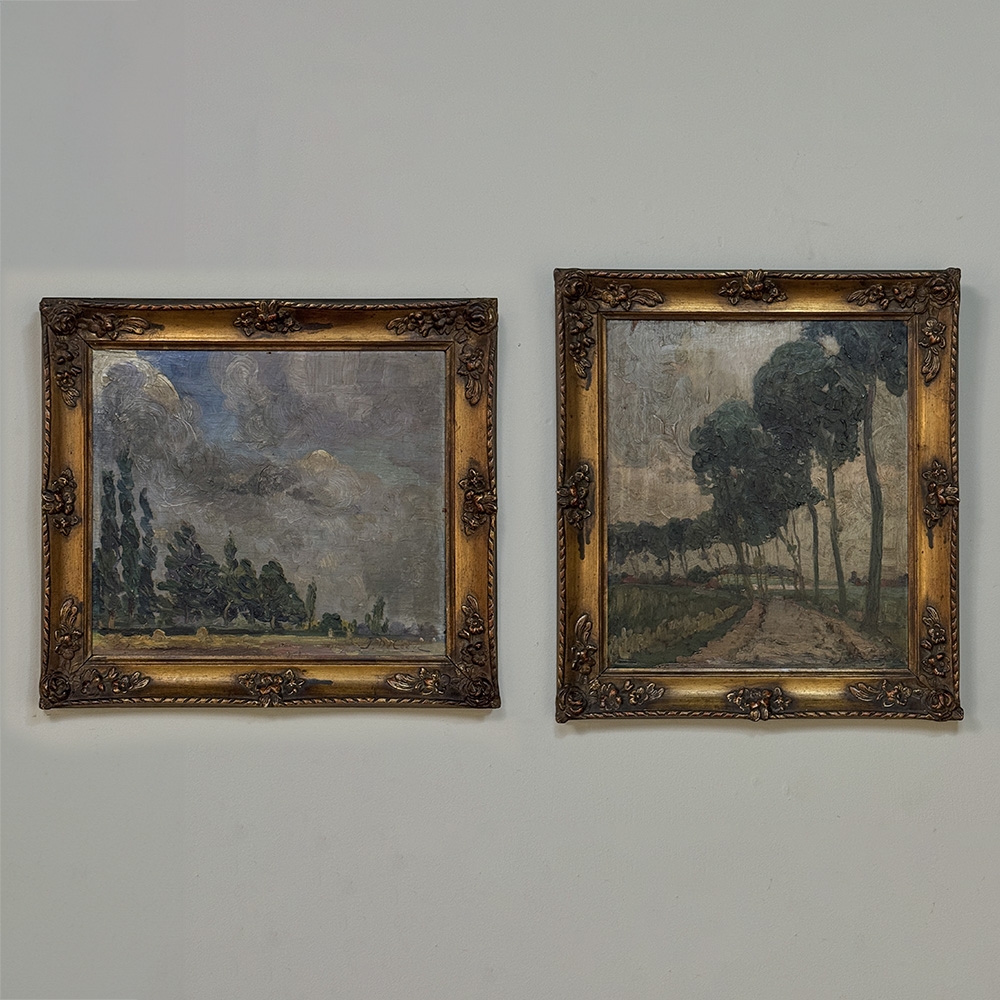 Though not a matched pair, the paintings are clearly connected in spirit and hand. Both works reveal a confident, painterly approach—loose yet deliberate brushwork, a nuanced palette, and an emphasis on mood over strict detail. The surfaces carry a softness and age that enhance their authenticity, while the compositions retain a natural balance that makes them easy to place together or separately.
