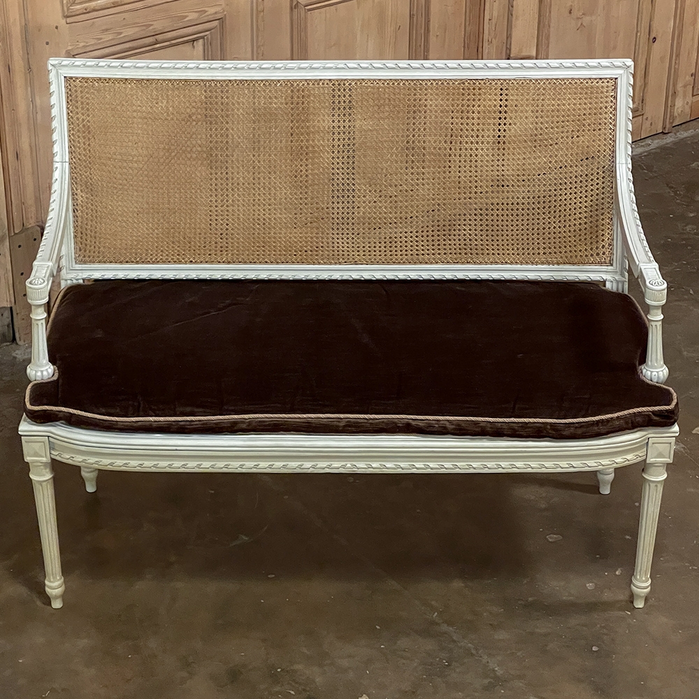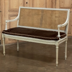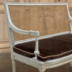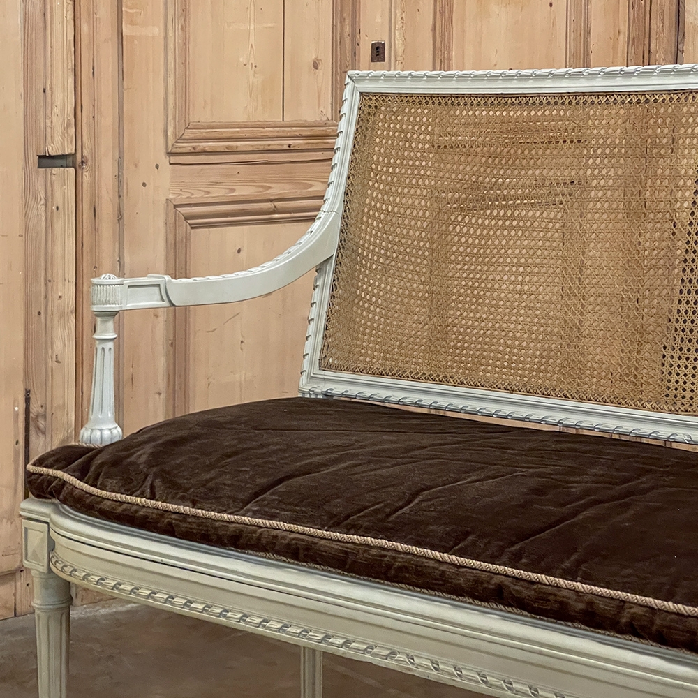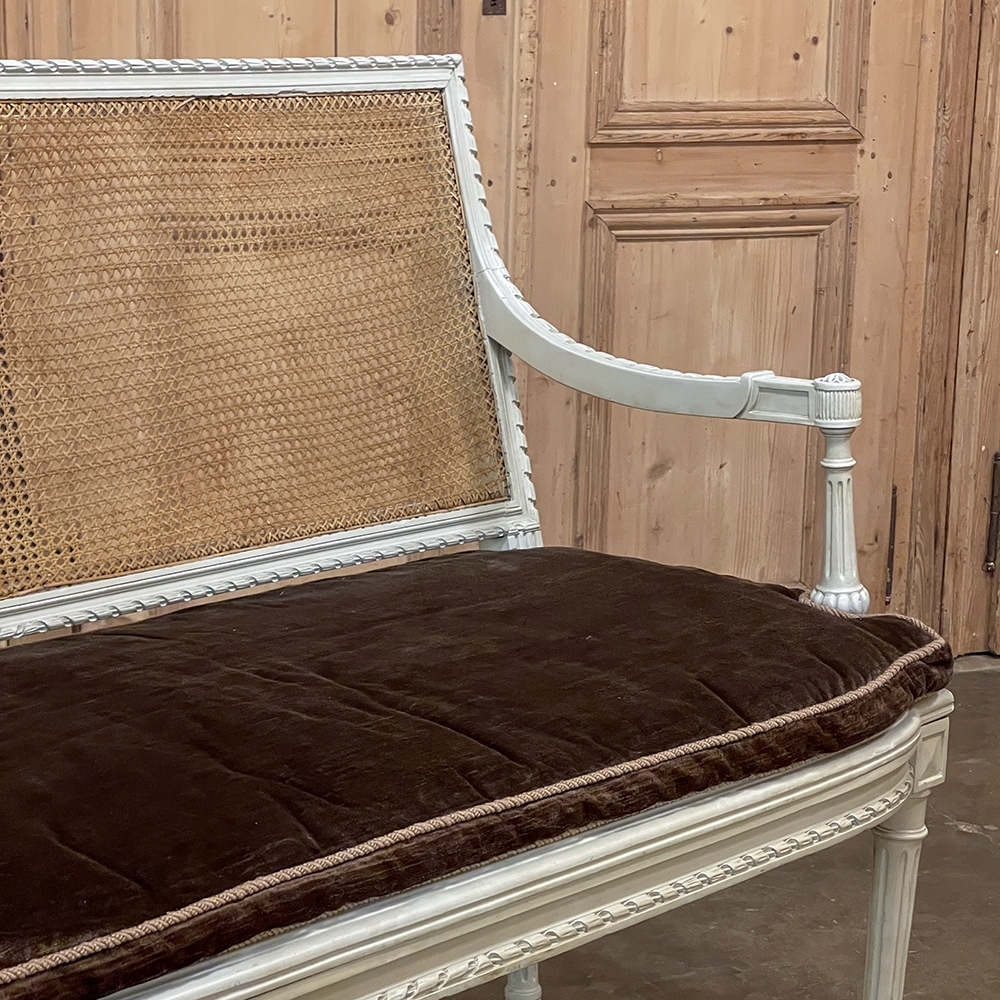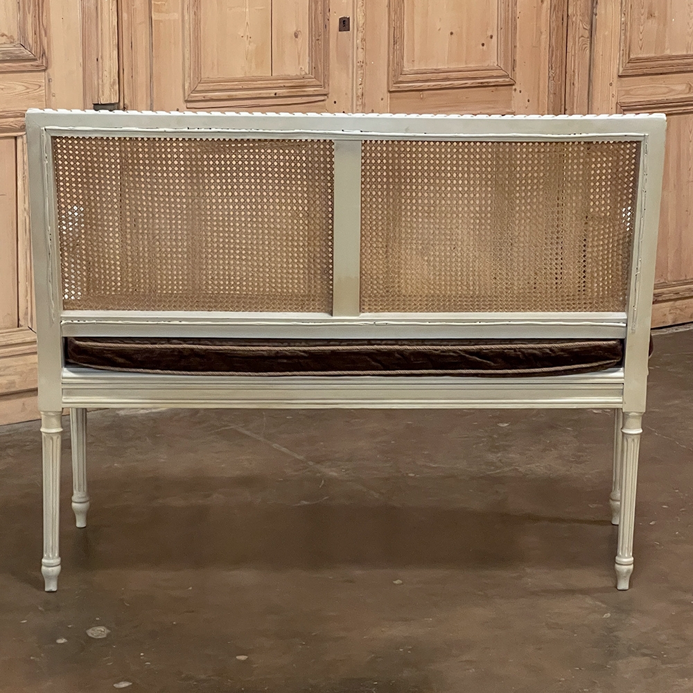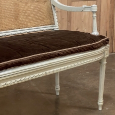 19th Century French Louis XVI Painted Canape with Cane & Cushion