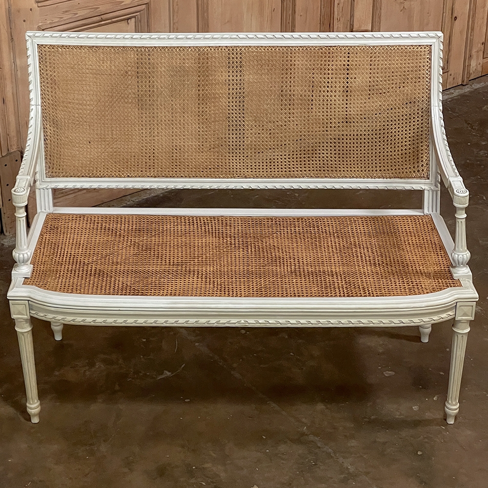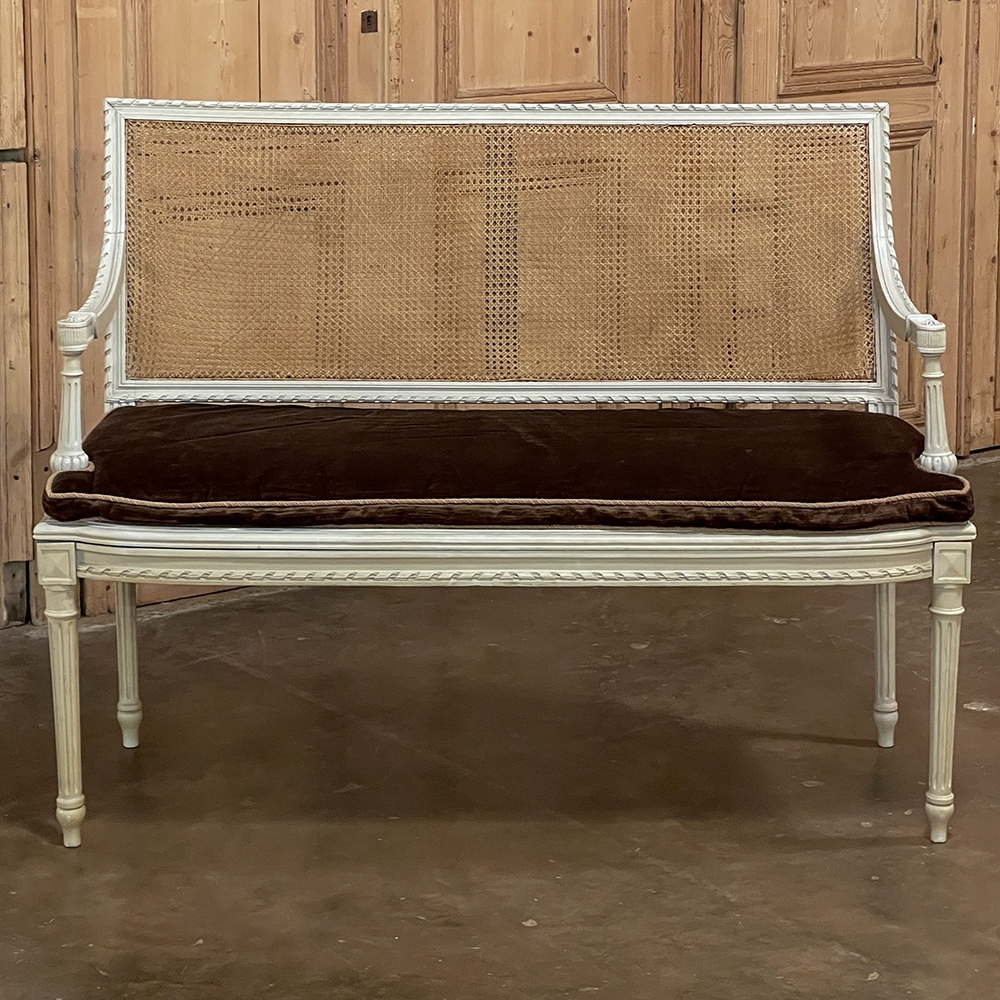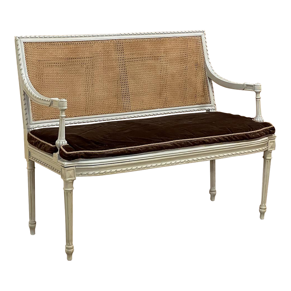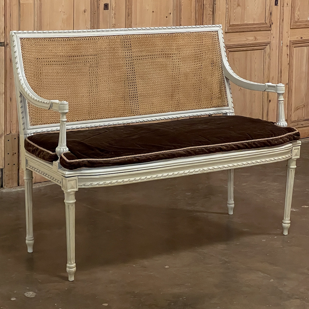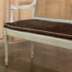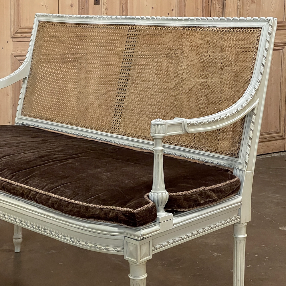 19th Century French Louis XVI Painted Canape with Cane & Cushion