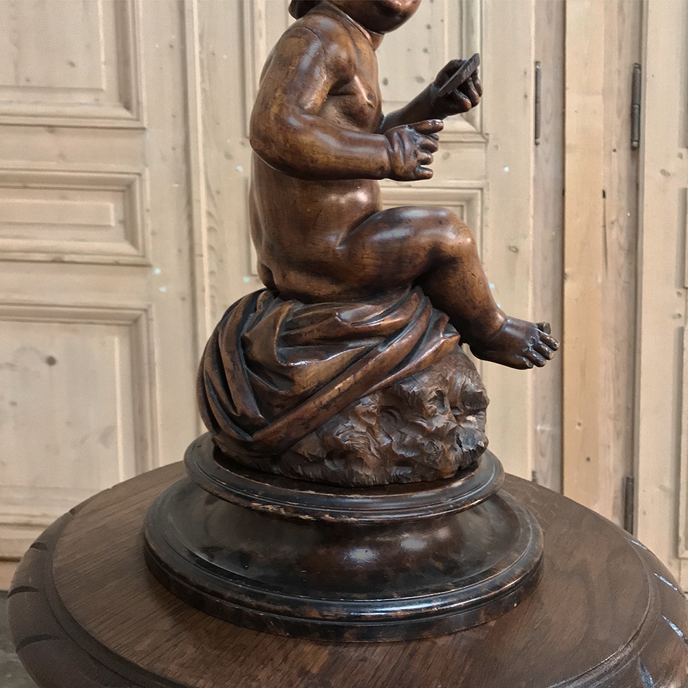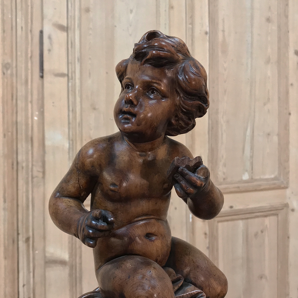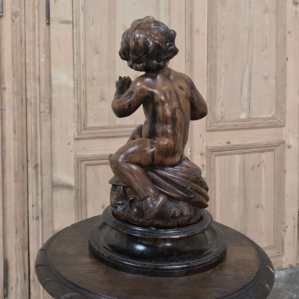 SaleHand-carved during the latter years of the 18th century, this charming sculpture depicts a young lad just finishing his morning swim. The sculptor exhibits here his mastery of human anatomy, at the same time capturing the innocence of the boy, who appears to be showing off a find to a companion nearby. Sculpted from select French walnut.