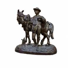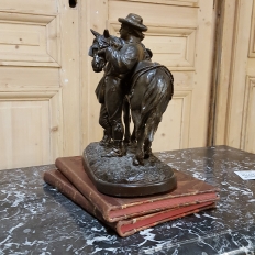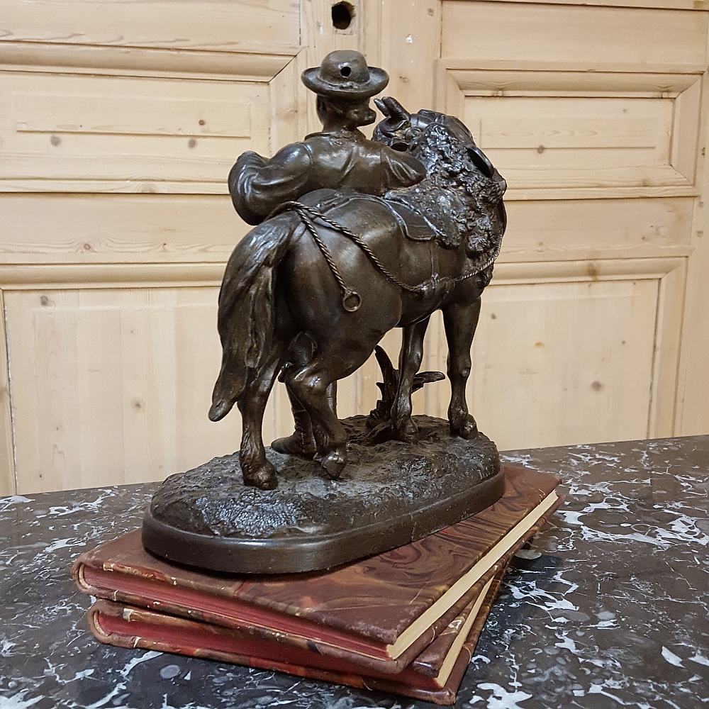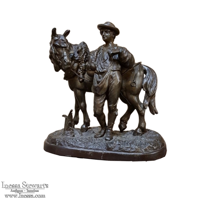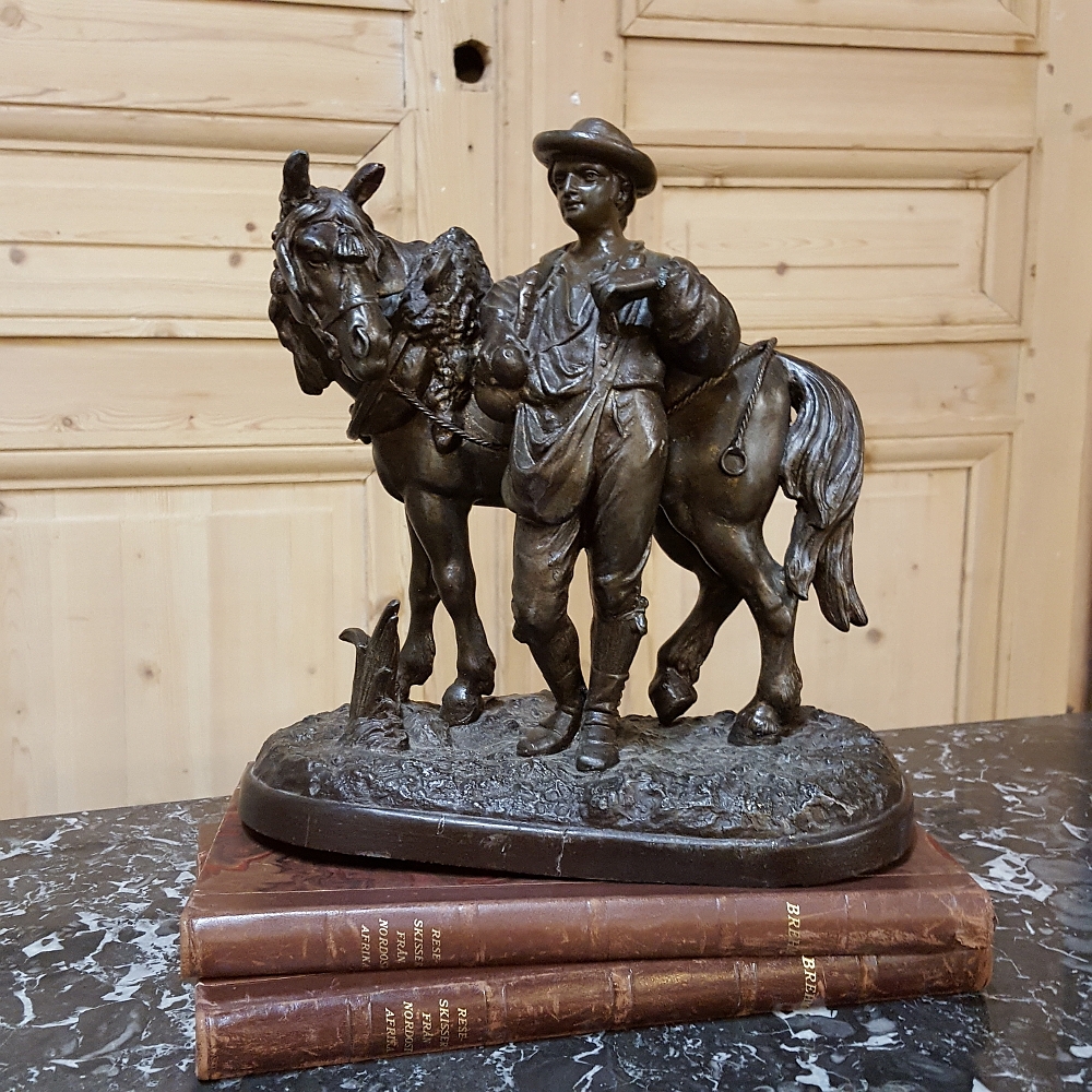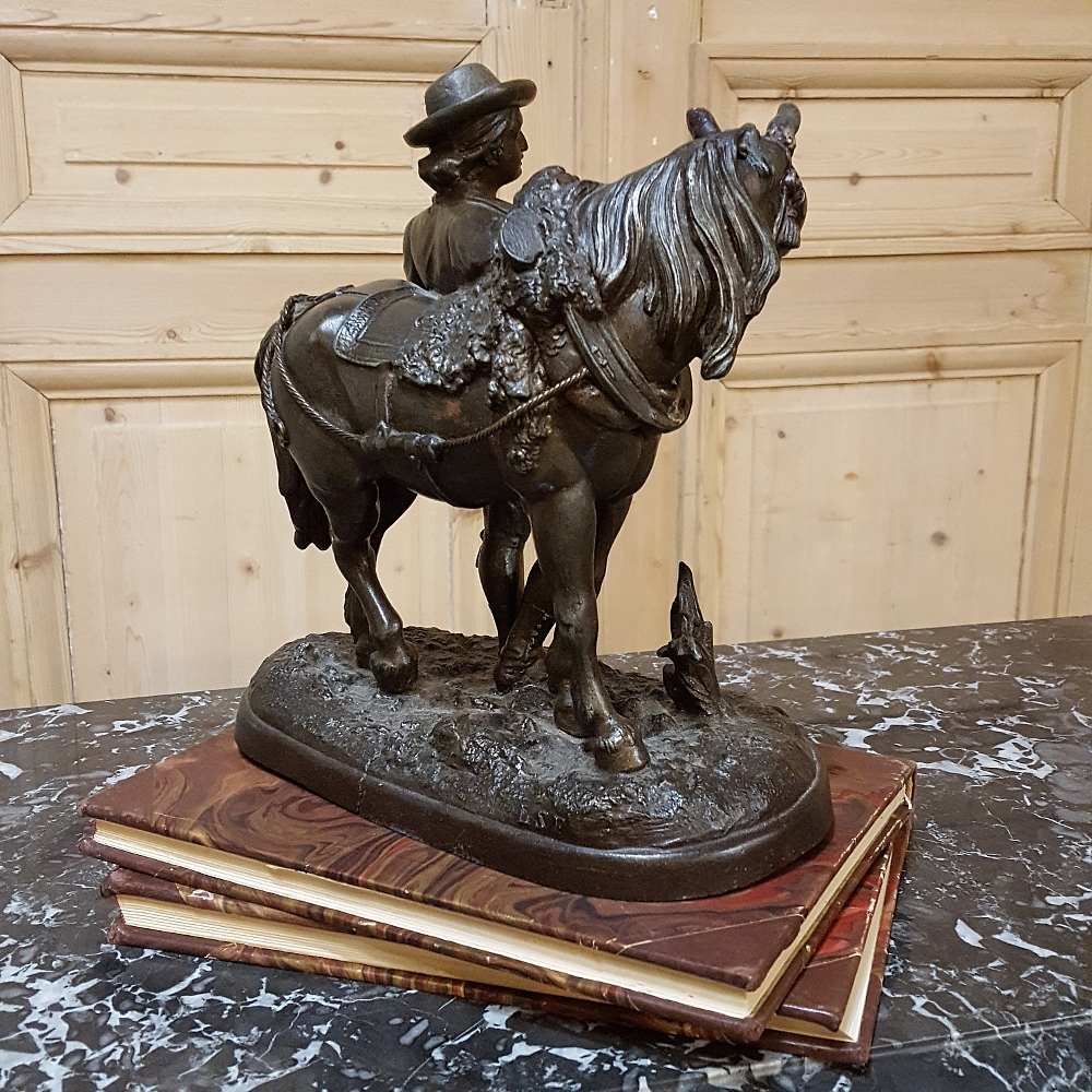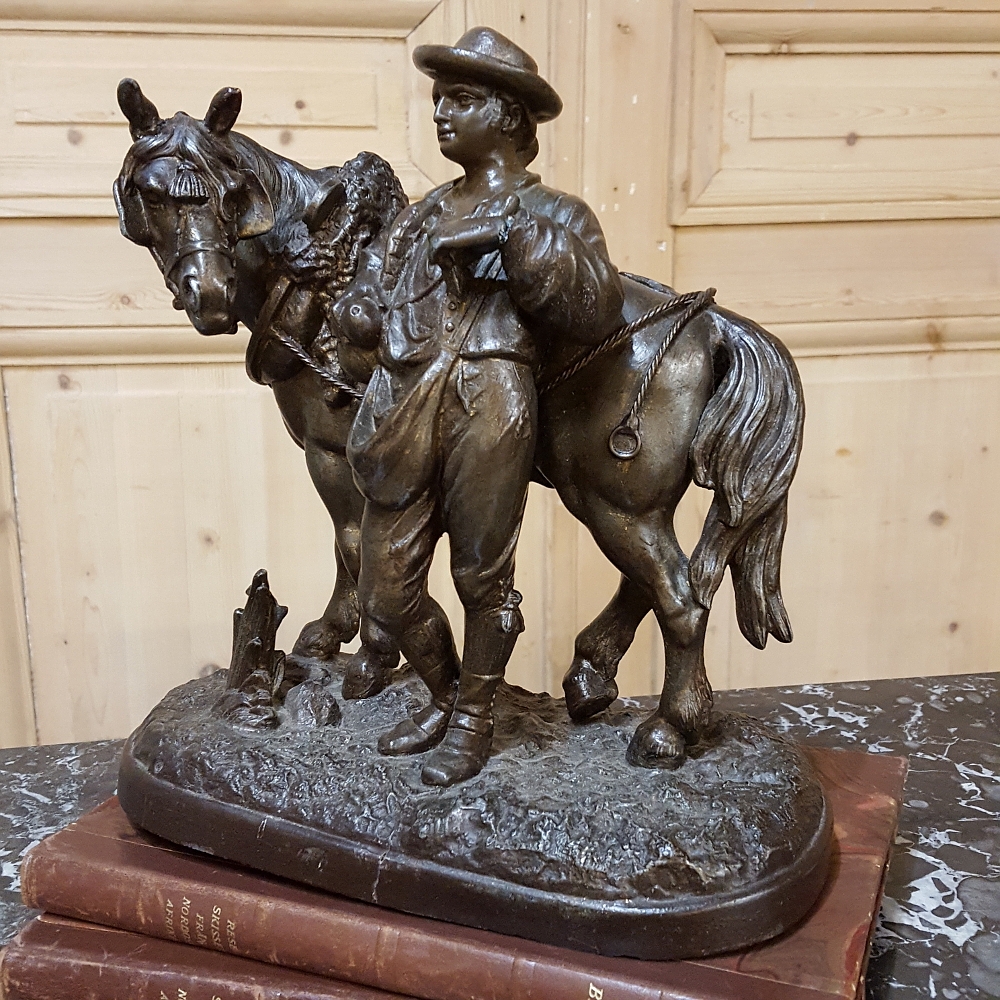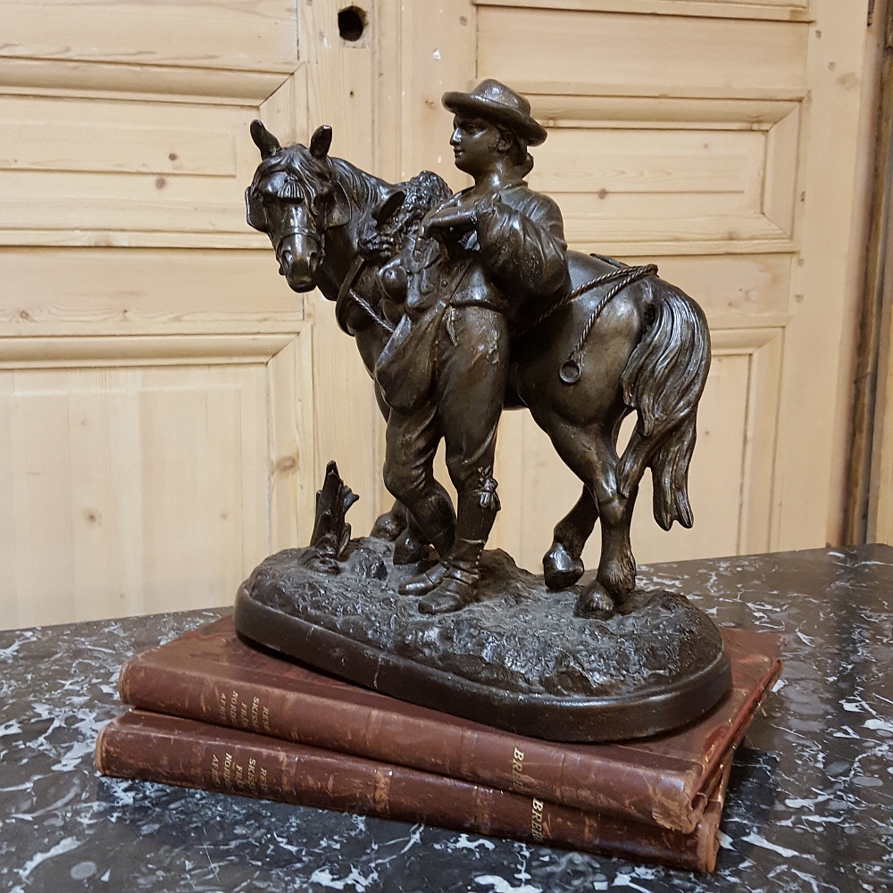 SaleThis charming 19th Century Country French Spelter Statue of Horse & Rider has been given a patinaed bronze finish, and depicts a country lad with his faithful steed.