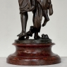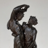 Sale19th Century Statue of Lovers in Spelter on Faux Marble depicts two young lovers in classical raiment enjoying their vitality and company. This idyllic notion rose to incredible popularity during the Belle Epoque, culminating in a variety of sculptors depicting such scenarios in bronze. Then copies would be made of the original bronzes which were cast in spelter and given a hand-applied finish to mimic the look of bronze. Note the detail in the garments, the bough of flowers, even the love birds on the ground at their feet! The classic poses were derived from the French fascination with ancient Greek and Roman statuary. Set upon a wooden base which has been meticulously hand-painted to look like marble.