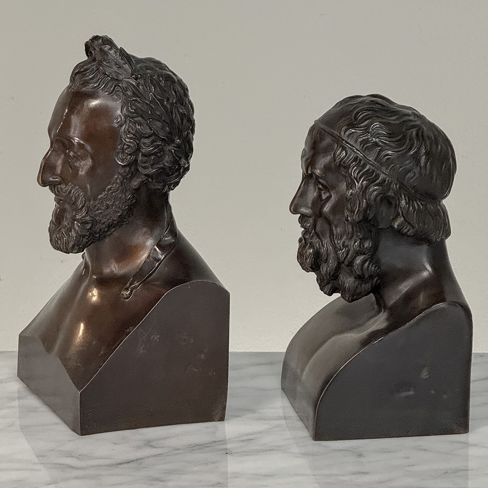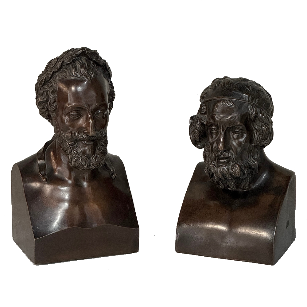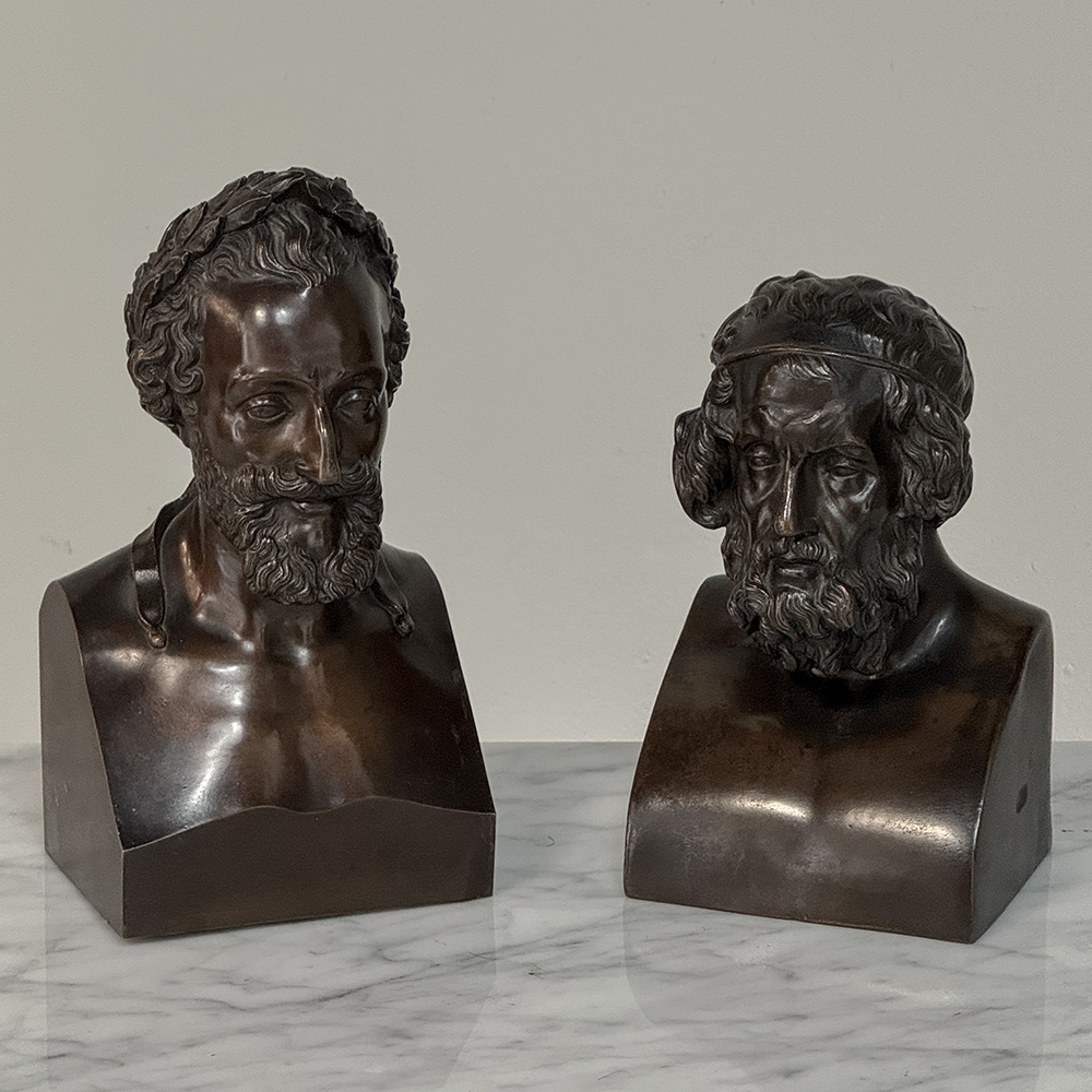 Antique Cast Bronze Busts of Plato & Epicurus for Display or Bookends
