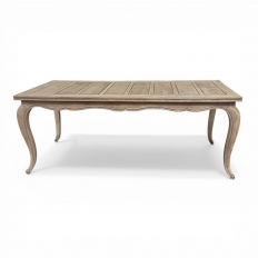 Hand-crafted from beautifully grained fruitwood, this elegant Country French dining table reflects the quiet refinement of traditional provincial craftsmanship. The lighter, mellow tone of fruitwood lends the piece a warm, inviting character distinct from darker walnut or oak, allowing the natural beauty of the aged timber to take center stage.The long...