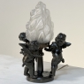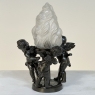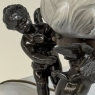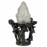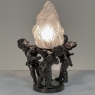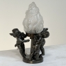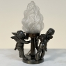 Antique Neoclassical Spelter Table Lamp ~ Girandole with Bronze Finish will make a charming accent light for your favorite room! Depicting three playful cherubs dancing around in a circle, the center is a pedestal that contains a single medium base socket and a torch flame globe. The cherubs and base are cast in spelter and given a patinaed bronze finish for a classic look. Newly and professionally electrified to US Standards, it is ready to provide timeless ambiance to your home or office!