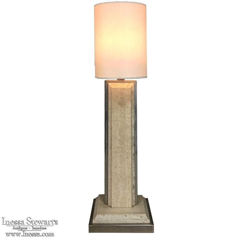SaleMid-Century Travertine Table Lamp with brass accents is perfect for today's modern contemporary look!