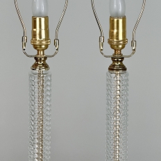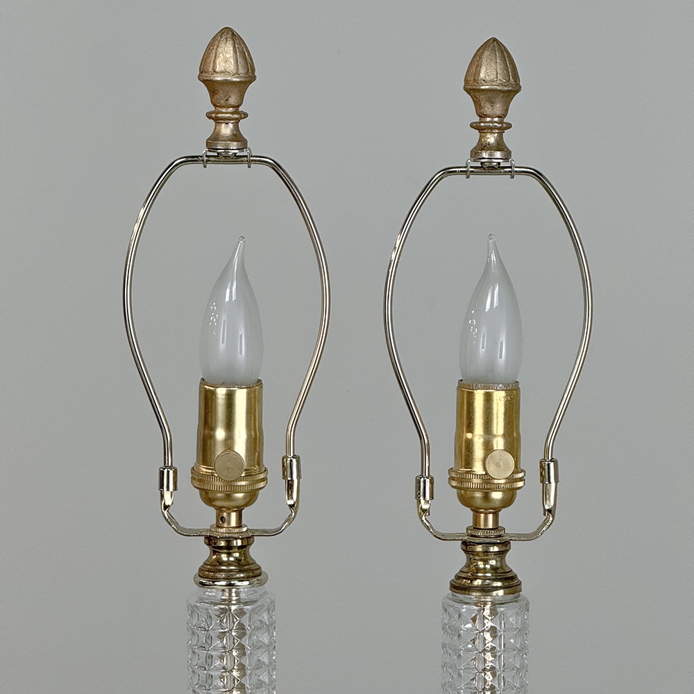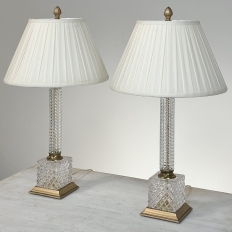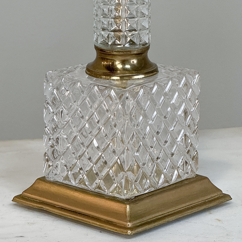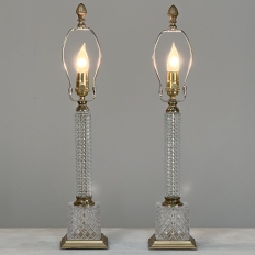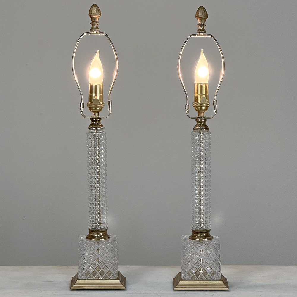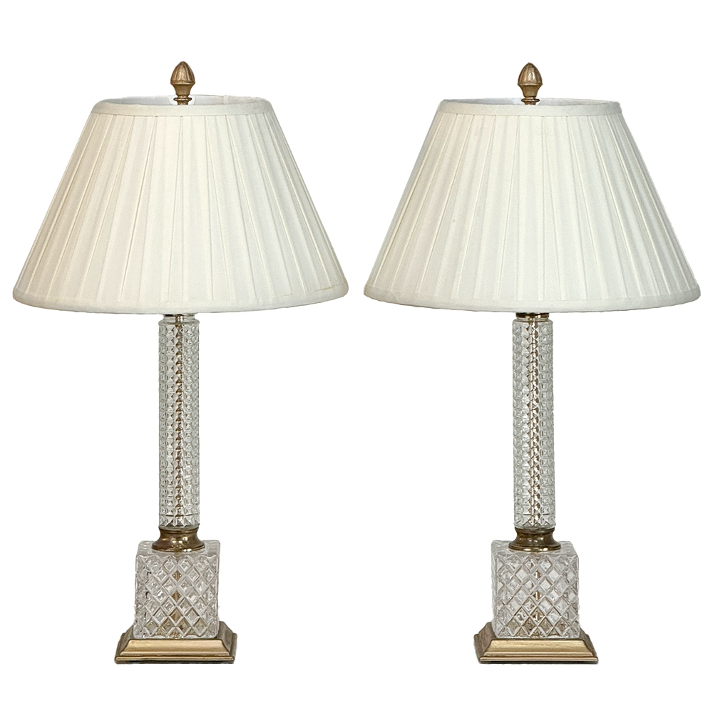 Pair Mid-Century Neoclassical Cut Crystal & Brass Table Lamps