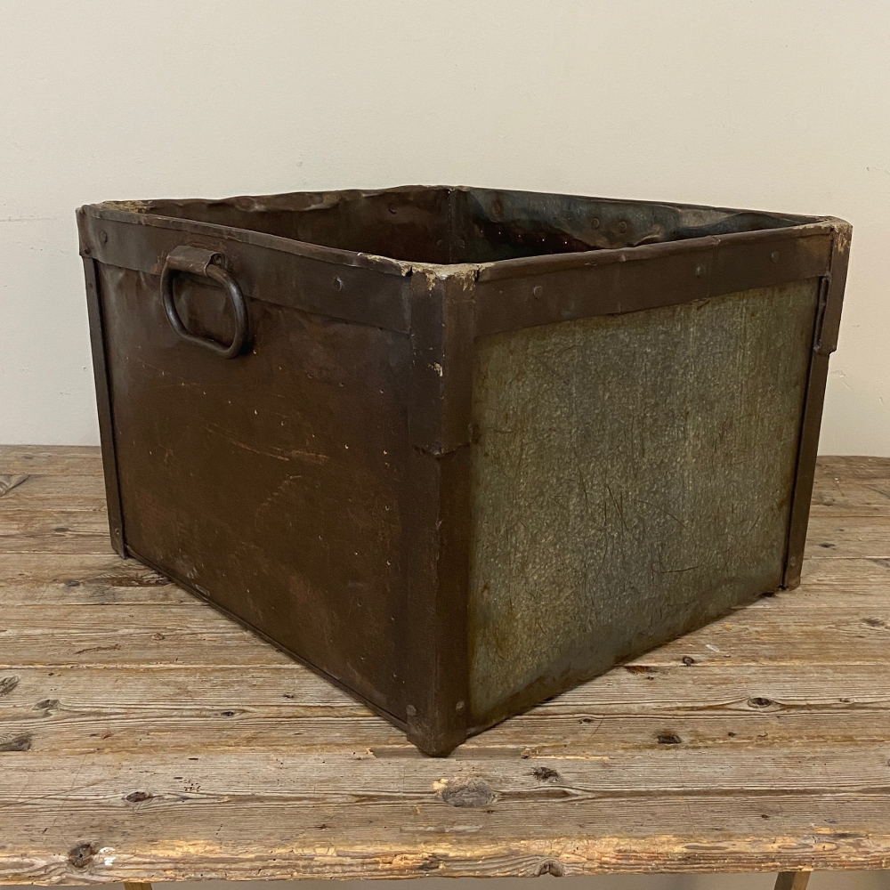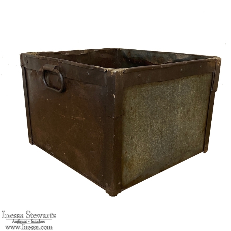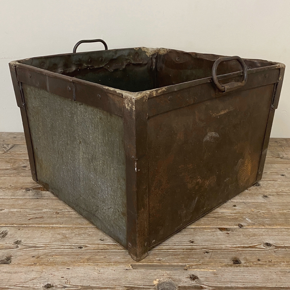 Antique Industrial Bin ~ Jardiniere was hand-crafted from steel, and features a no-nonsense design with convenient handles on each side. Perfect for the casual decor!