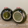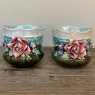 Pair 19th Century French Faience Barbotine Jardinieres ~ Cachet Pots not only retain their vivid jewel tone coloration, each has been remarkably well preserved with delicate rose blossom petals being so realistically rendered one is tempted to smell the flowers! The turquoise blue background merges into the rich olive green base, with just a touch of figure to the design topped with a fluted and scalloped ridge. The flowers spring forth dramatically and wrap around half of the circumference, with the entire work hand-painted to perfection prior to firing in the kiln. Perfect for displaying fresh flowers or as decorative accents all on their own!