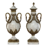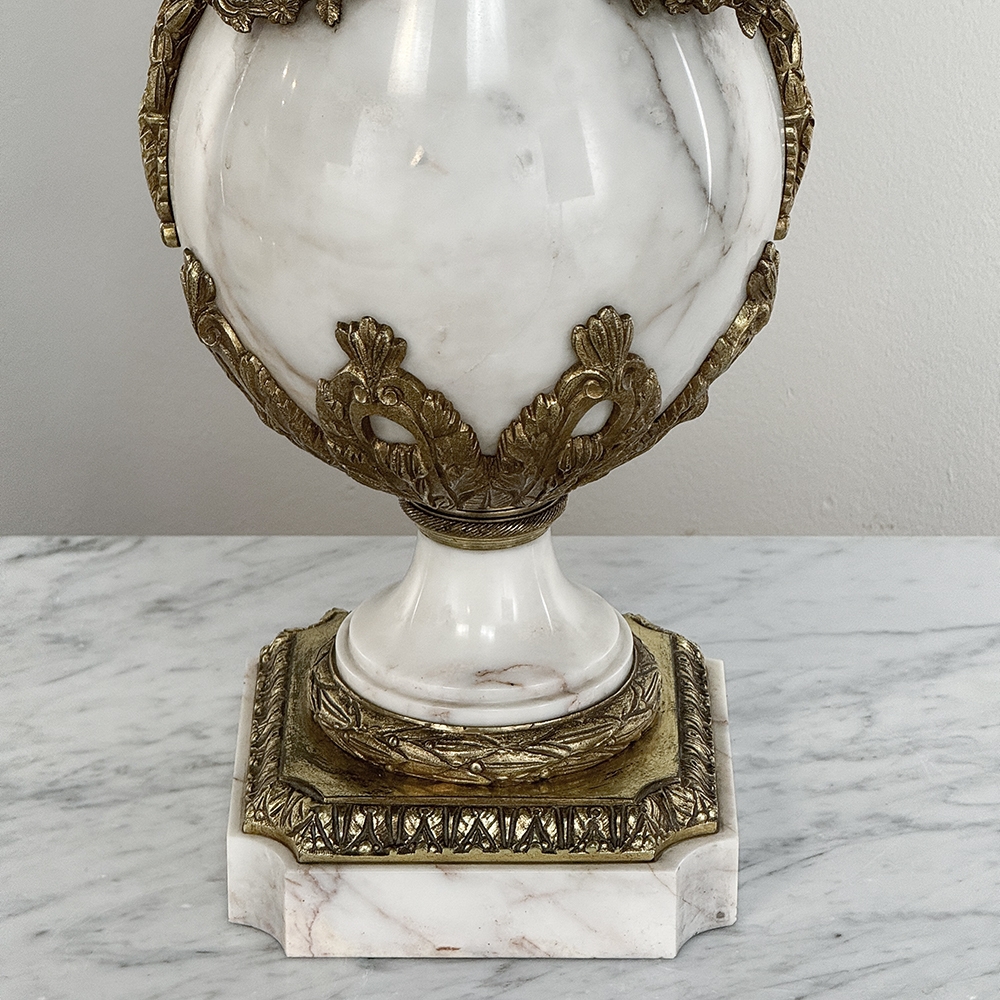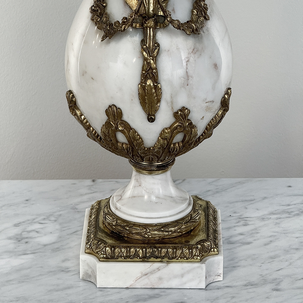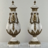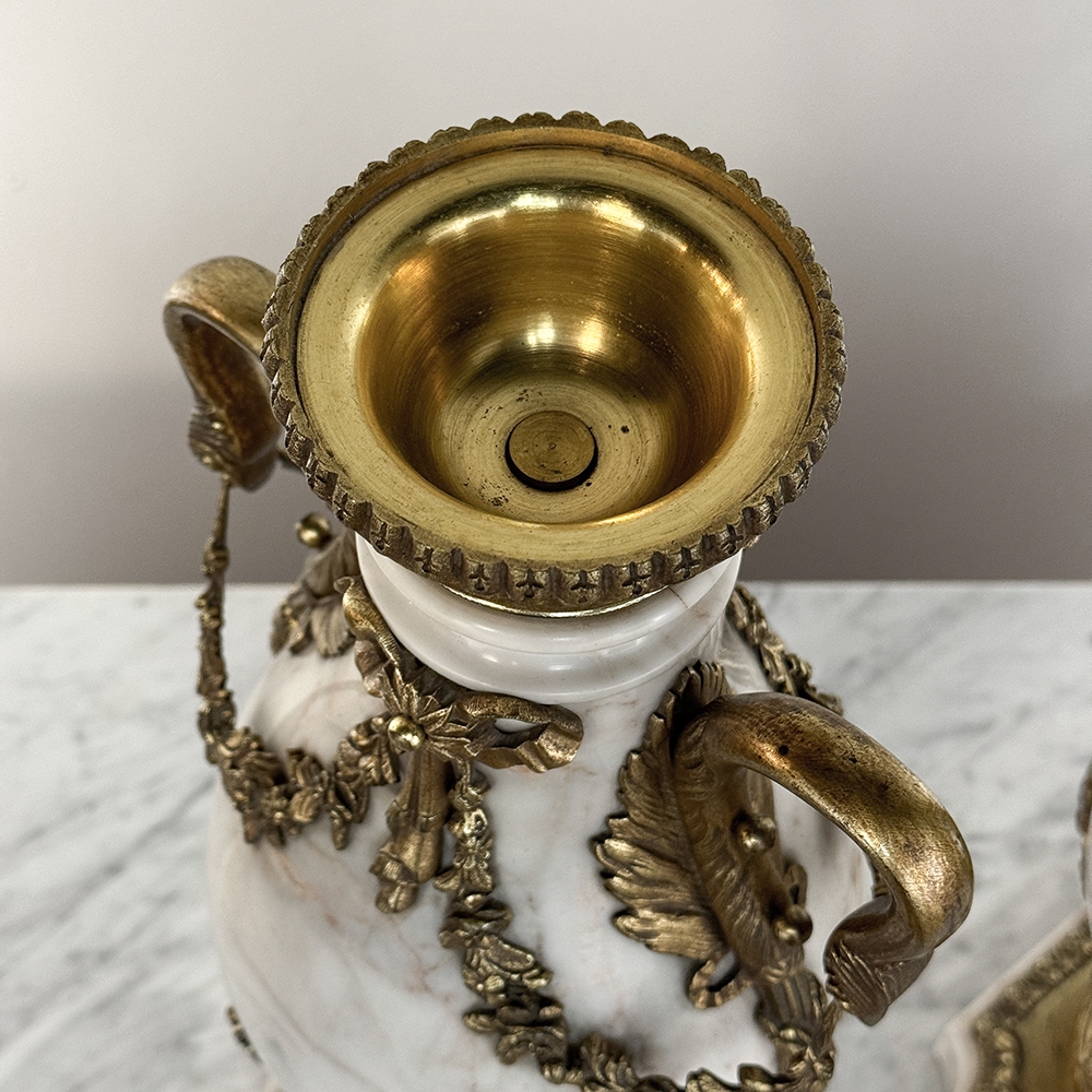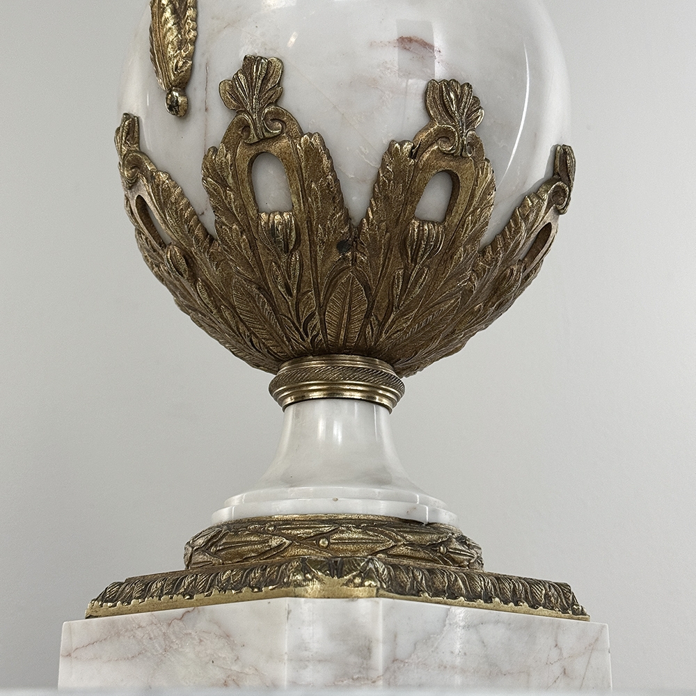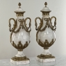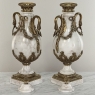 Pair Antique French Empire Cararra Marble and Bronze Cassolettes ~ Mantel Urns