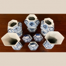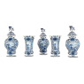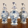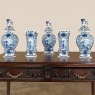 Set of Five 18th Century Hand-Painted Delft Vases including 3 Lidded Urns