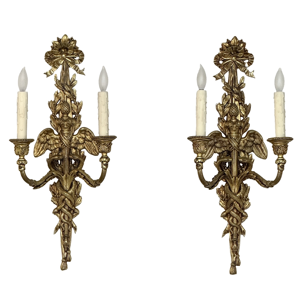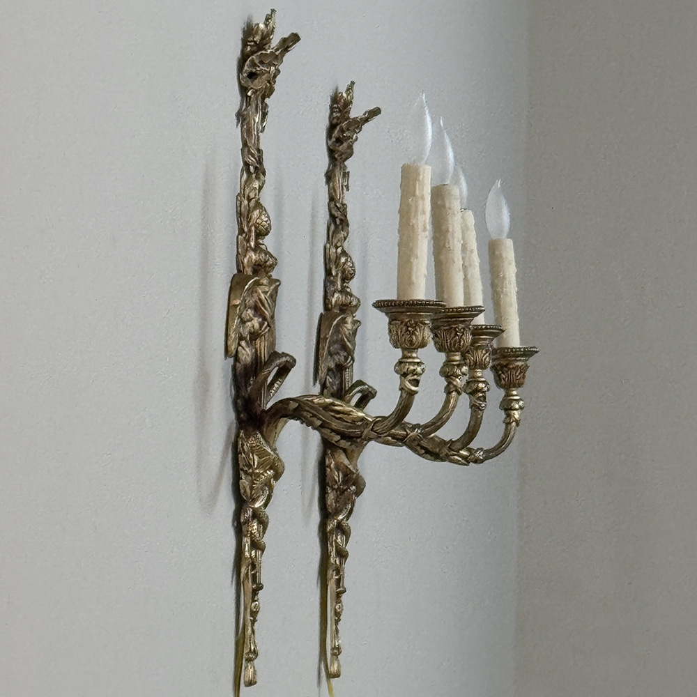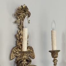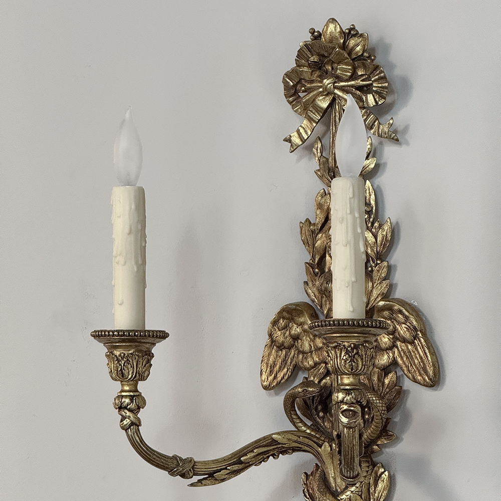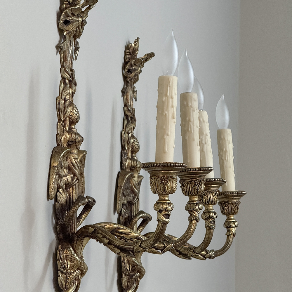 Pair Antique French Louis XVI Bronze Wall Sconces
