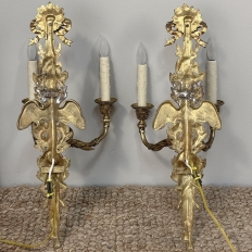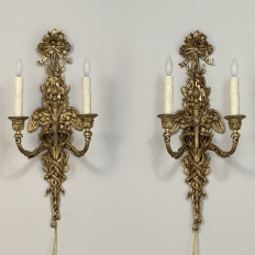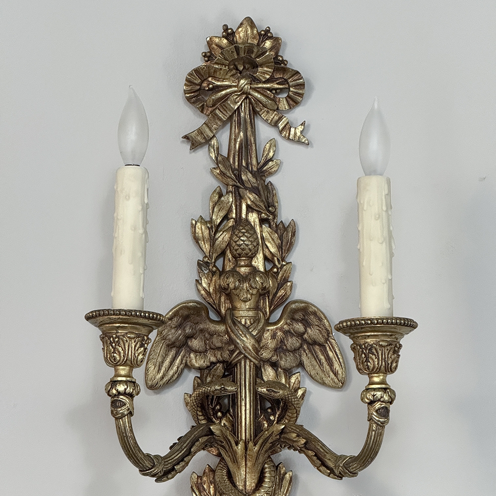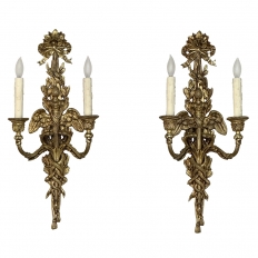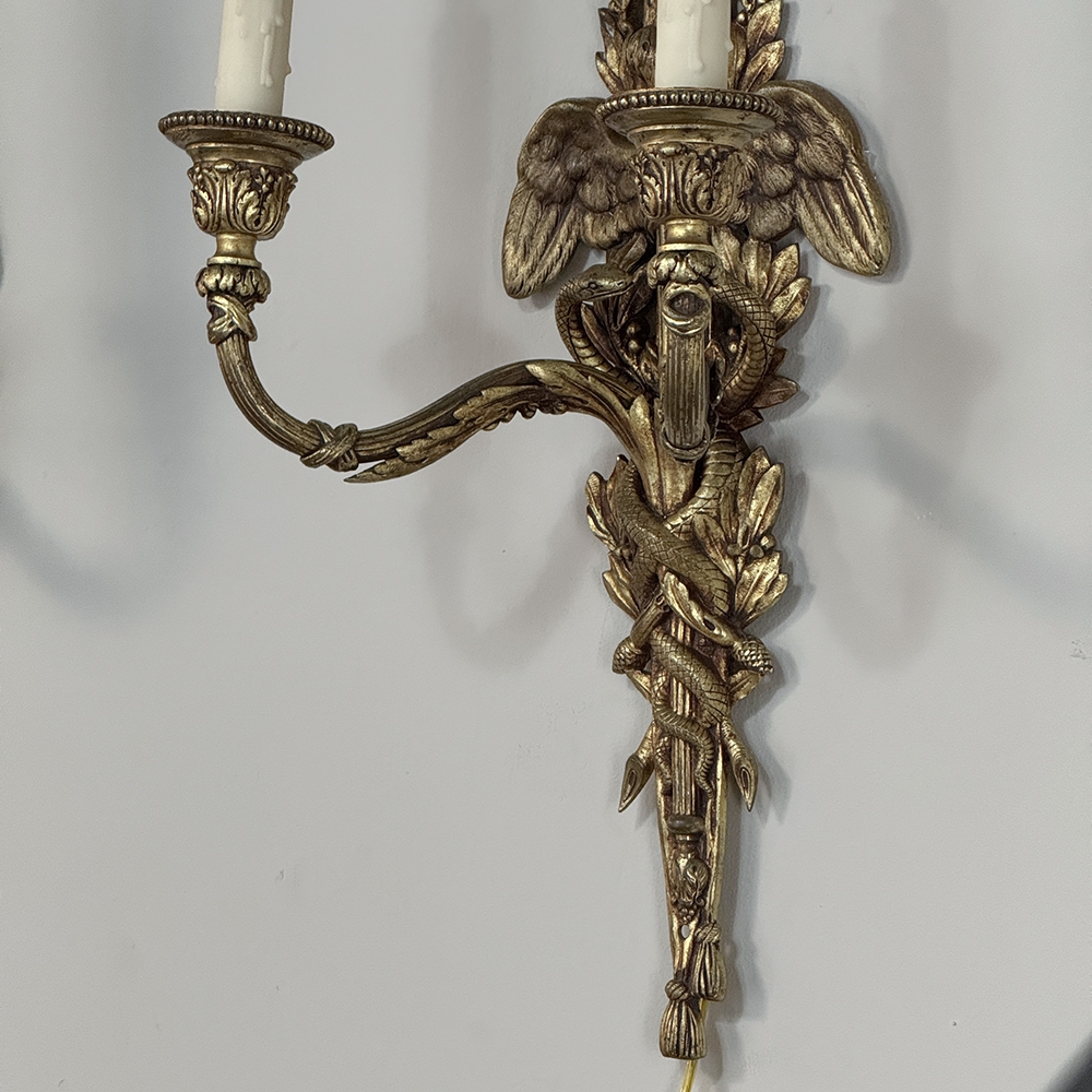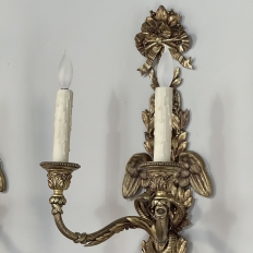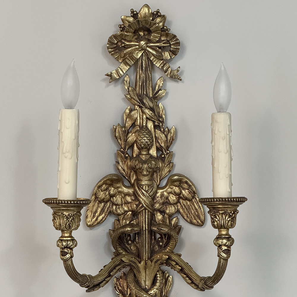 Pair Antique French Louis XVI Bronze Wall Sconces