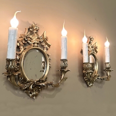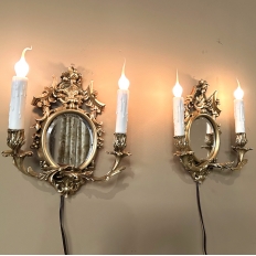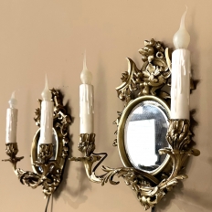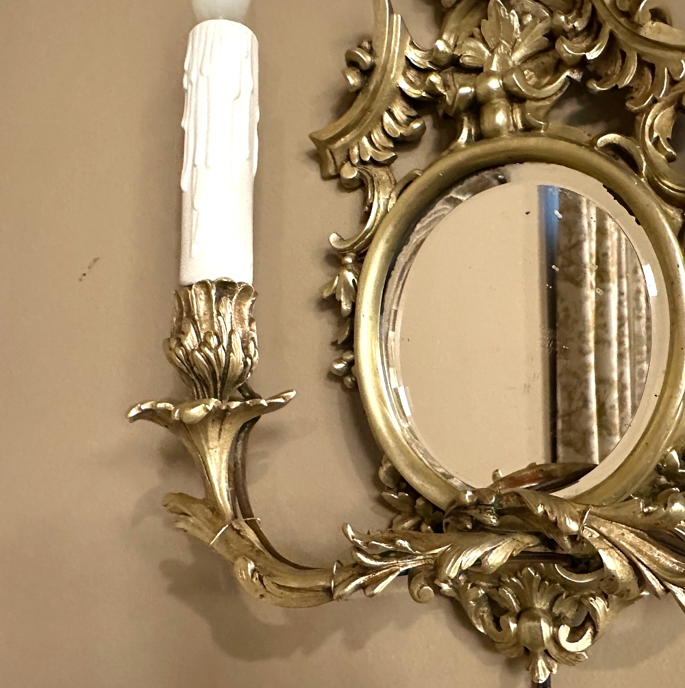 Pair Antique French Louis XVI Bronze Wall Sconces