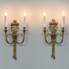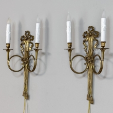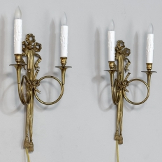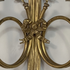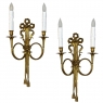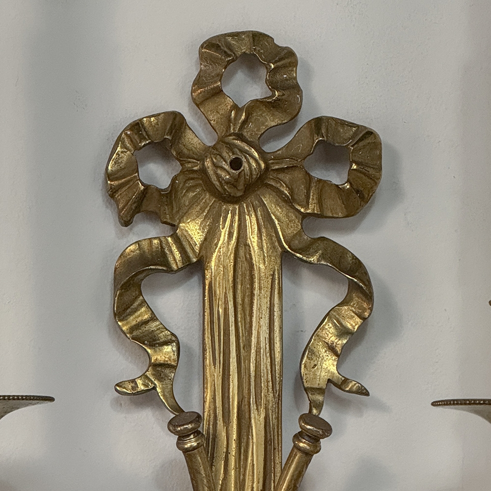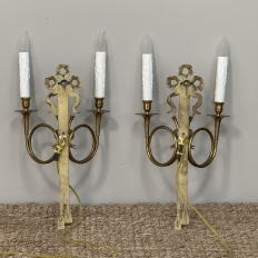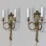Pair Antique French Louis XVI Neoclassical Cast Brass Wall Sconces