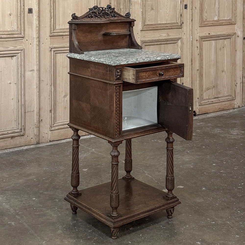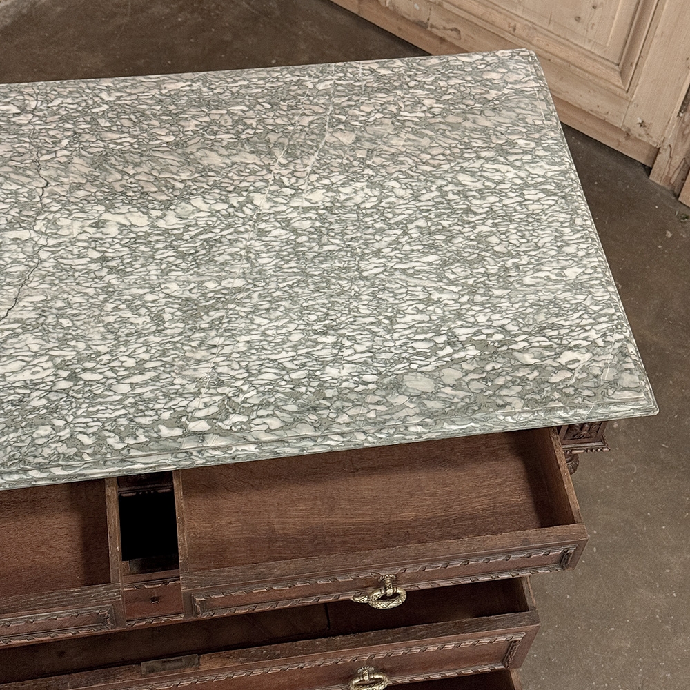 19th Century French Louis XVI Walnut 4-Piece Bedroom Set is a marvelous example of craftsmanship and timeless style ~ executed in rich French walnut, cast brass and beautifully veined marble! Sold separately it is still available as a four piece set as of this writing~