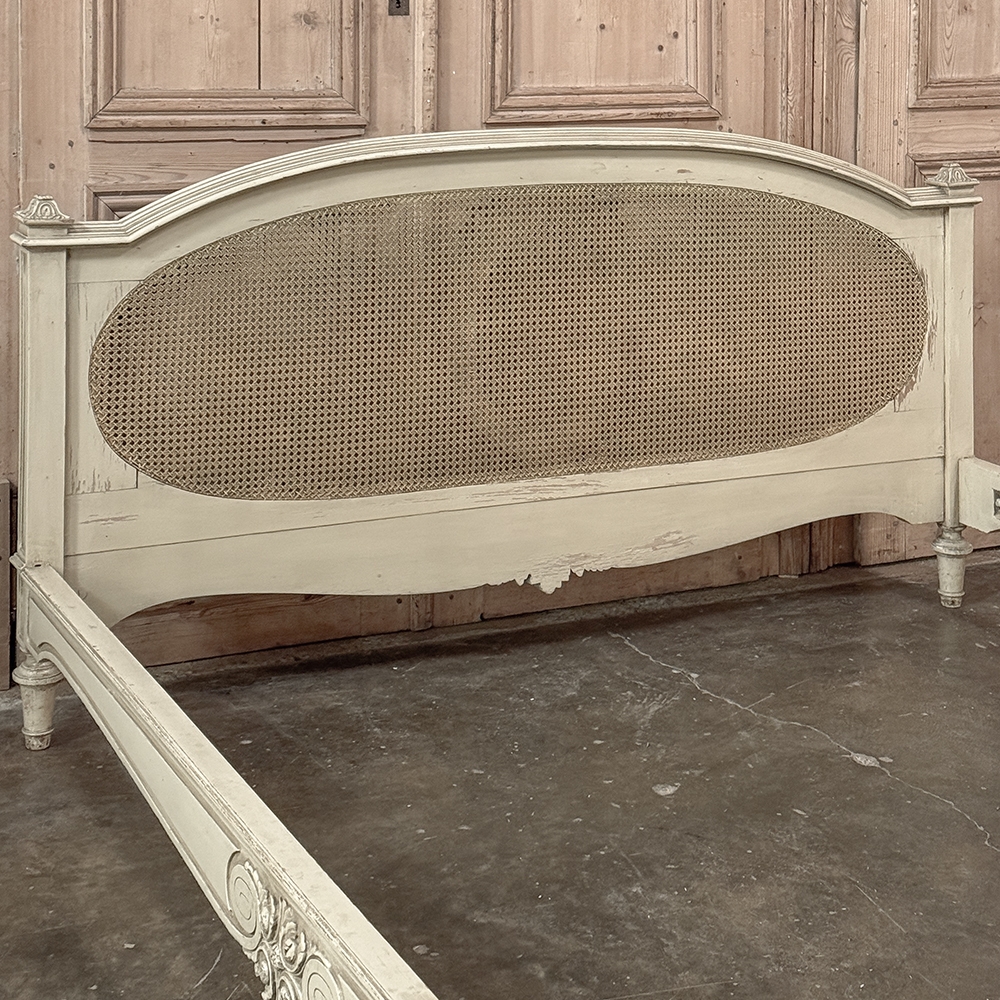 19th Century French Louis XVI Painted QUEEN Bed with Caning
