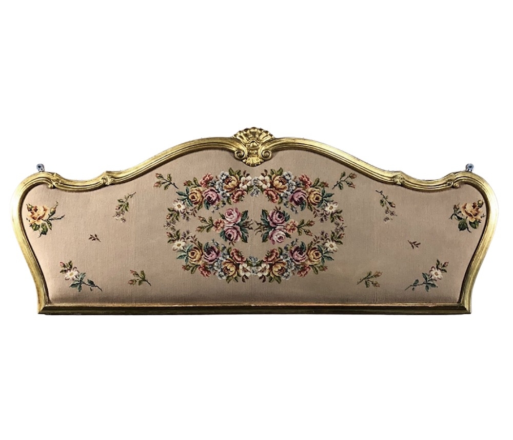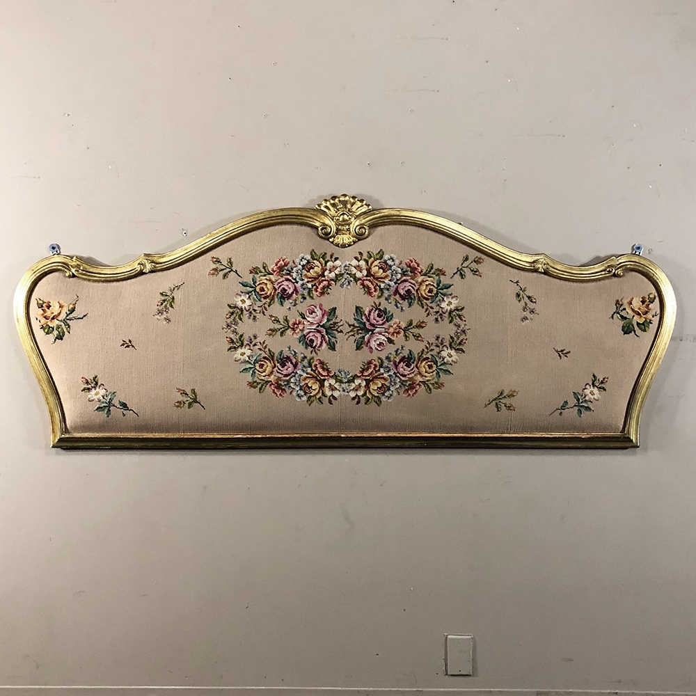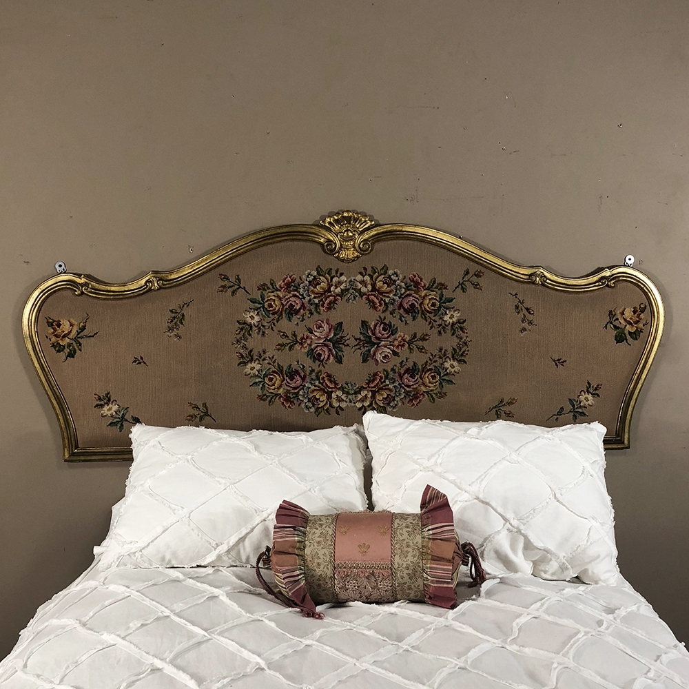 SaleAntique Italian Baroque Gilt-wood King or Queen Headboard with Needlepoint is easily mounted on the wall and then just roll up your mattress set on the metal frame you bought from the mattress dealer, and you're good to go in inimitable Italian flair! this headboard will fit KING or QUEEN bed.