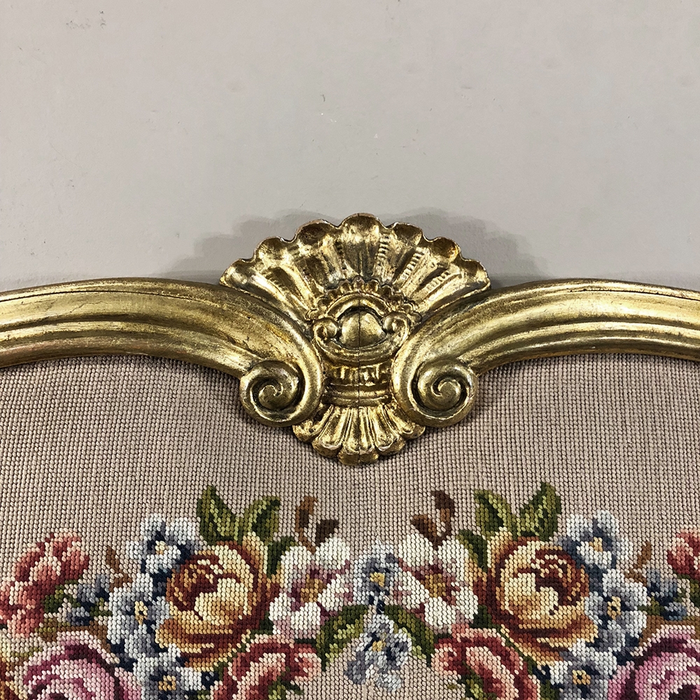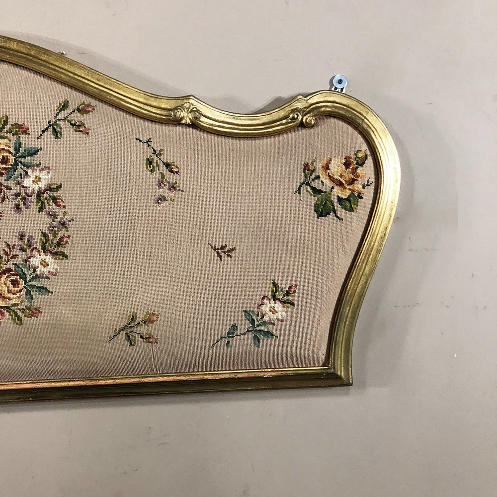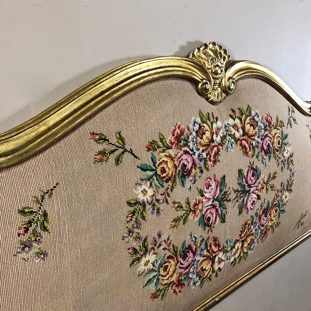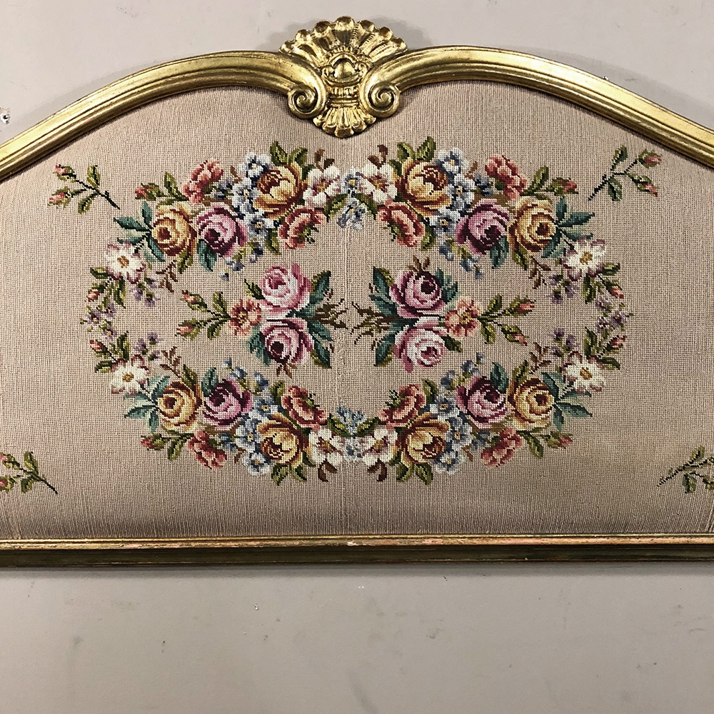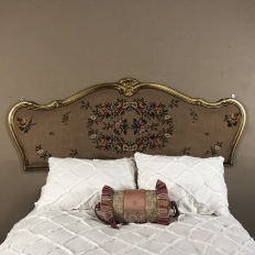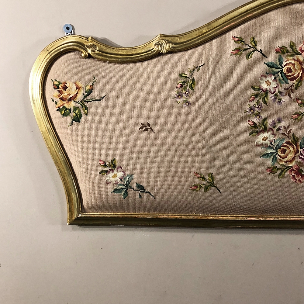 Antique Italian Baroque Giltwood Headboard with Needlepoint