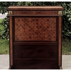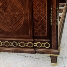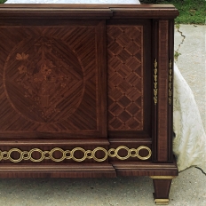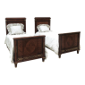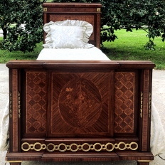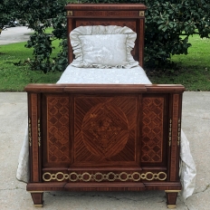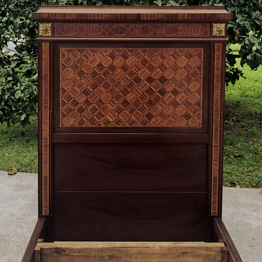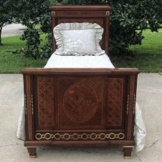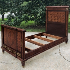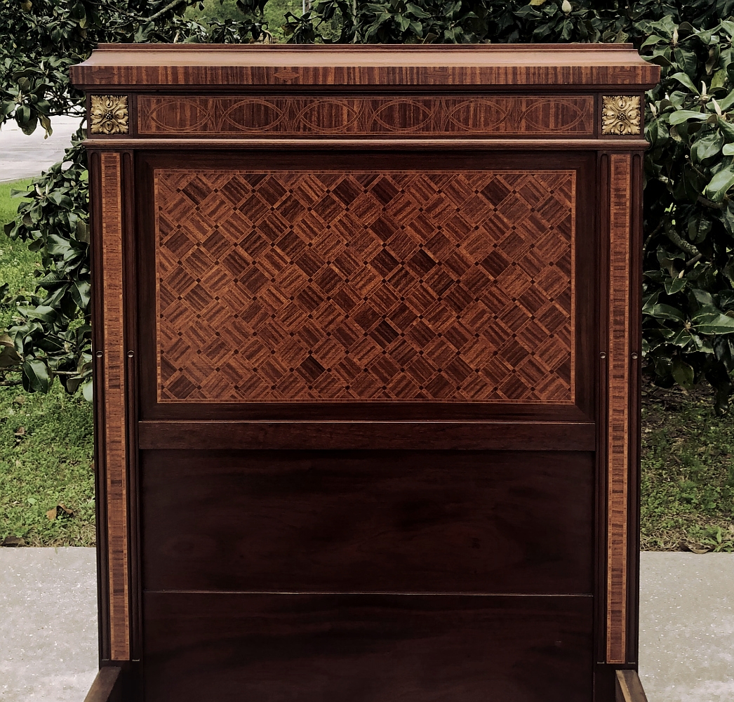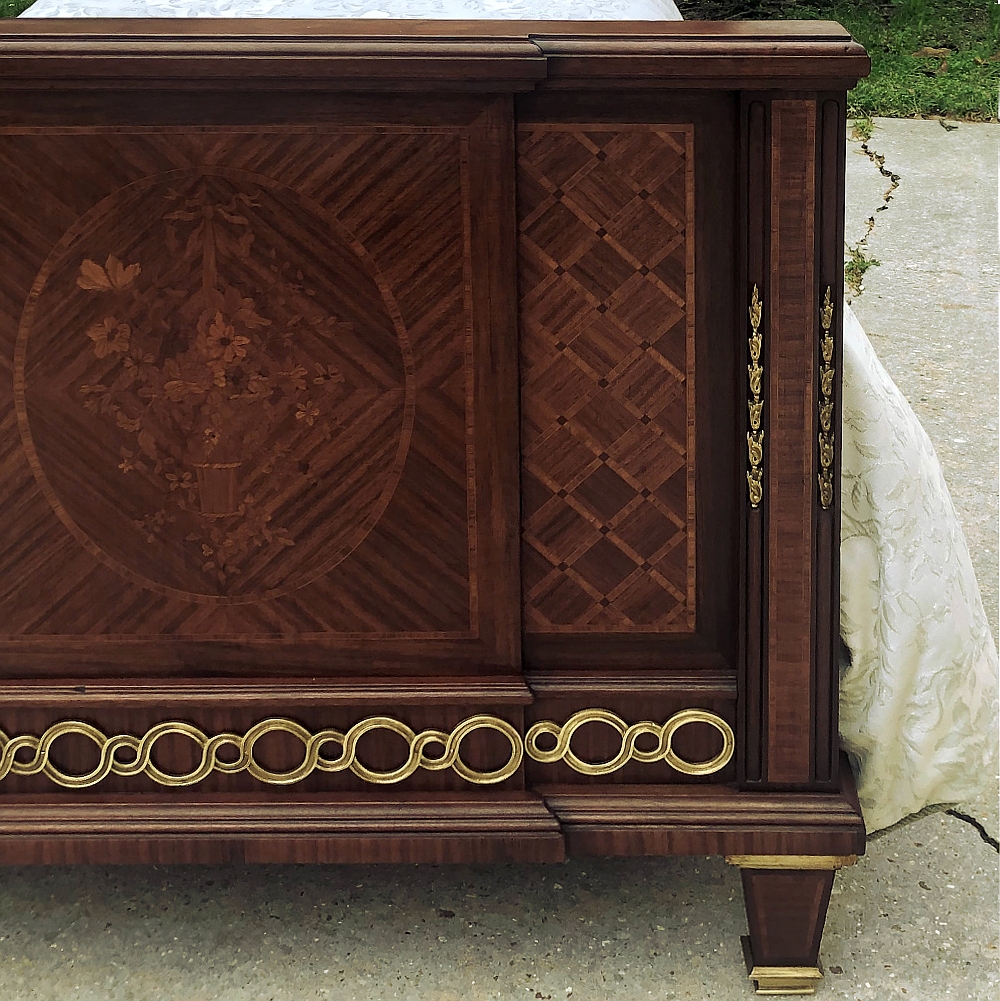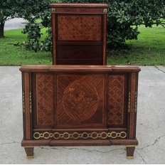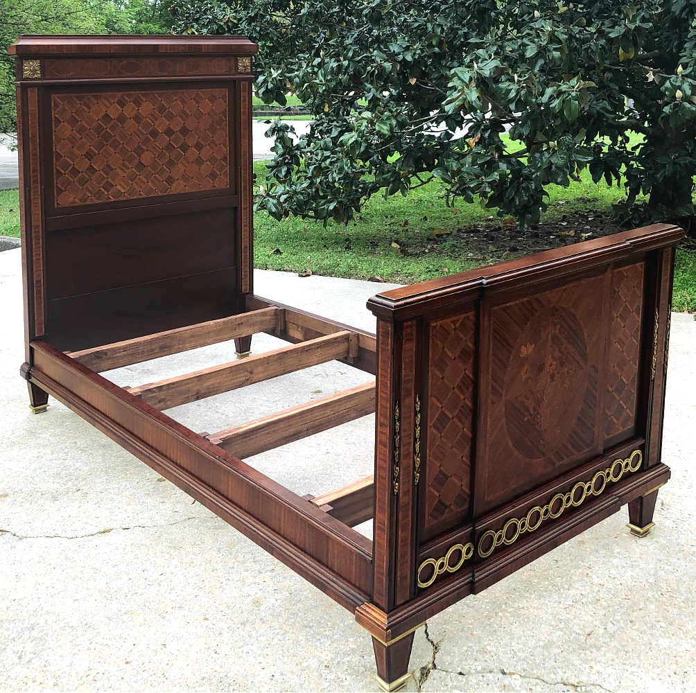 Pair Antique French Louis XVI Mahogany Marquetry Twin Beds with Bronze Ormolu