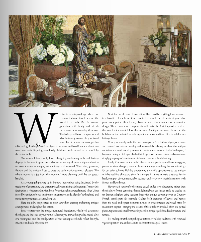 “Antique Letter Engraving WWe live in a fast-paced age where our communications travel across the world in seconds. Our face-to-face gatherings with family and friends carry even more meaning than ever…what better way to entertain your loved ones than to create an unforgettable table setting? It’s the perfect time of year to reconnect with old friends and cultivate new ones while lingering over lovely, delicious meals served on a beautifully decorated table.” Read more in Beverly Drive Magazine!