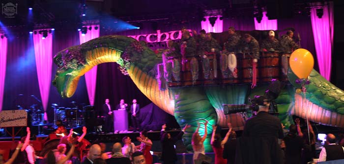 The Krewe of Bacchus in 1968 broke with age-old carnival traditions and began conducting lavish parades on the Sunday night before “Fat Tuesday”, with grander and more magnificent floats than the other krewes, and featuring a celebrity King to lead the parade (which was a total departure from 113 years of New Orleans Carnival lore). This past Sunday we were again elated to be guests for this spectacular ball, now one of the most revered in Carnival history both past and present. The celebrity ruler presiding over this joyful night was celebrated actor King Hugh Laurie of the television show House. The mesmerizing musical highlight of the evening was the performance by triple platinum group Styx, who finished a truly amazing evening.