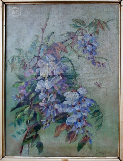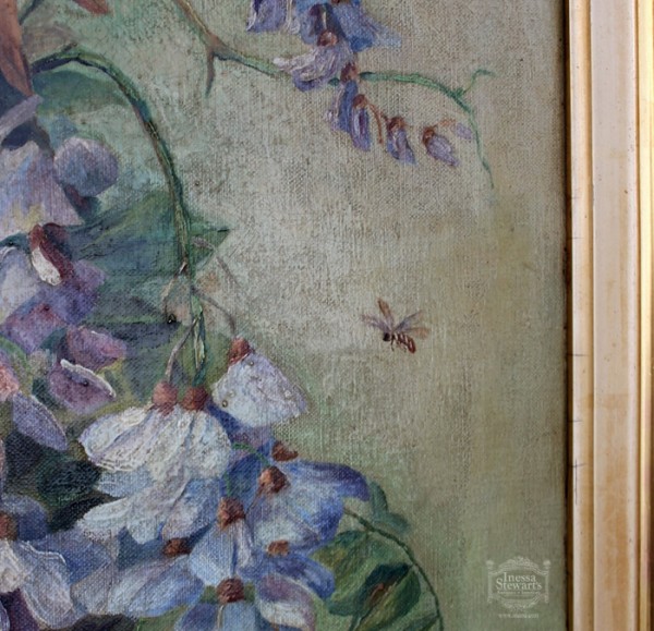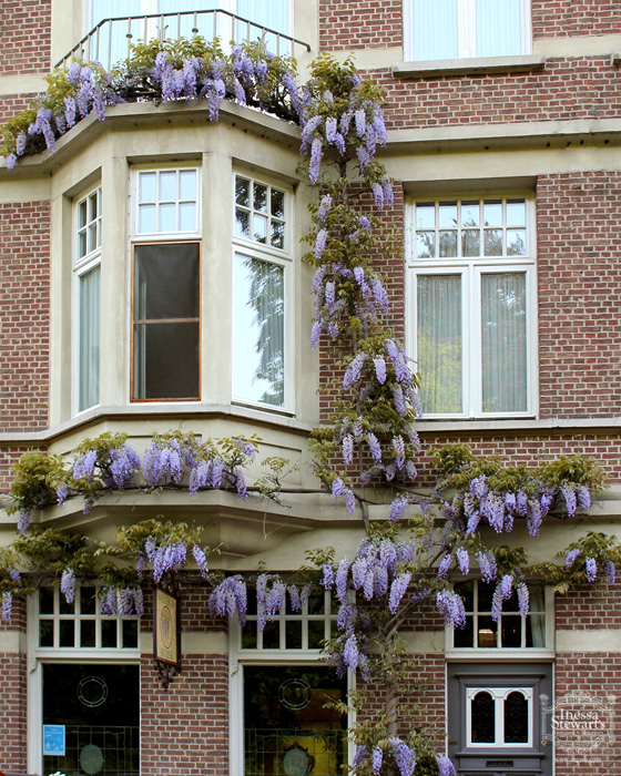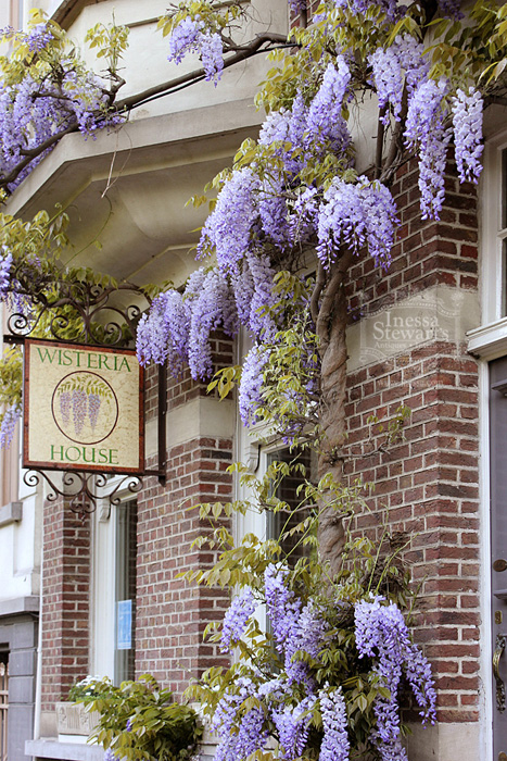 Can you imagine my surprise when I found this spectacular “Wisteria” painting after seeing it bloom all around us during our stay? We have wisteria growing on the wall behind our apartment in Europe and just down the street is this charming Bed and Breakfast, called “Wisteria house”. Enjoy the view!