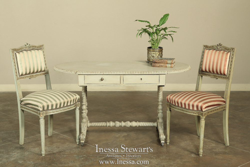 La Crème de la Crème! We don’t just show leftovers for our Antique Warehouse Sales ~ we have all the best antique merchandise on sale! Like this amazing pair of antique hand-carved Regence chairs in their original cream colored patinaed painted finish. They’re the Cat’s Meow!