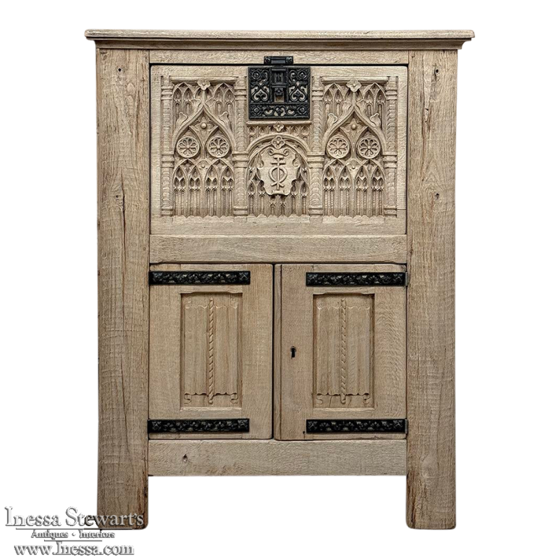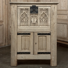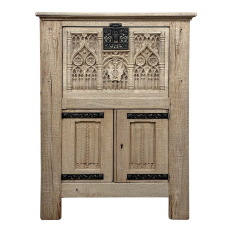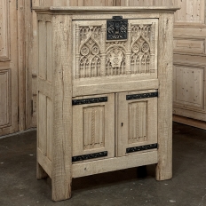 Antique French Gothic Revival Dry Bar ~ Raised Cabinet in Stripped Oak